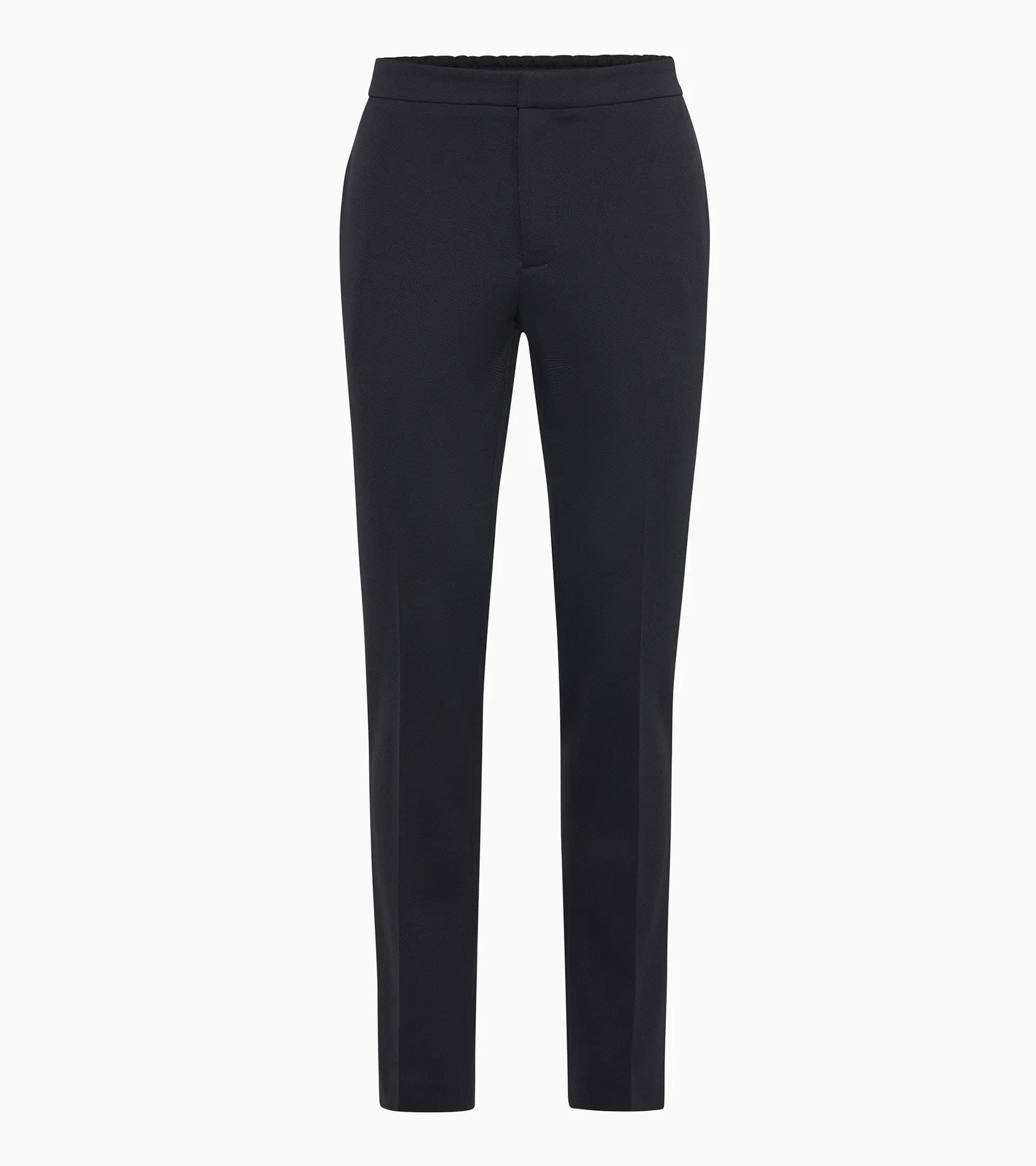 Esclusivi pantaloni Travel Suit in un misto di materiali elastici. Con piega accennata.