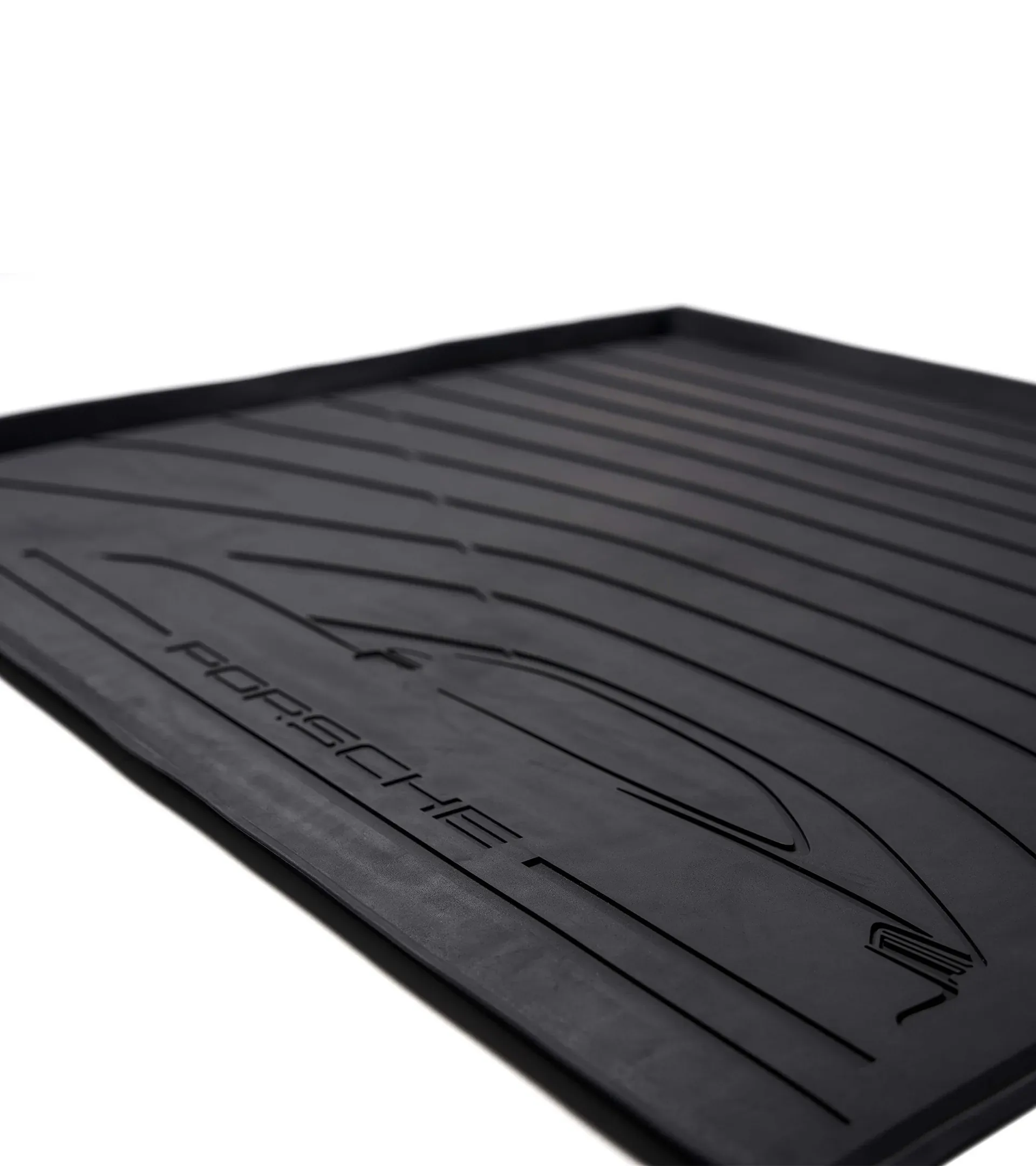 Il rivestimento del vano bagagli realizzato su misura per la Macan Electric protegge efficacemente il bagagliaio da sporco, umidità e usura. La vasca di protezione nera convince per il suo design accattivante, con silhouette della vettura e scritta "PORSCHE". La vasca piatta per il vano bagagli è realizzata in materiale impermeabile di alta qualità e, se necessario, può essere facilmente pulita. Ciò significa che il vano di carico sarà sempre in perfette condizioni e pronto per qualsiasi avventura tu voglia vivere con la tua Macan Electric.