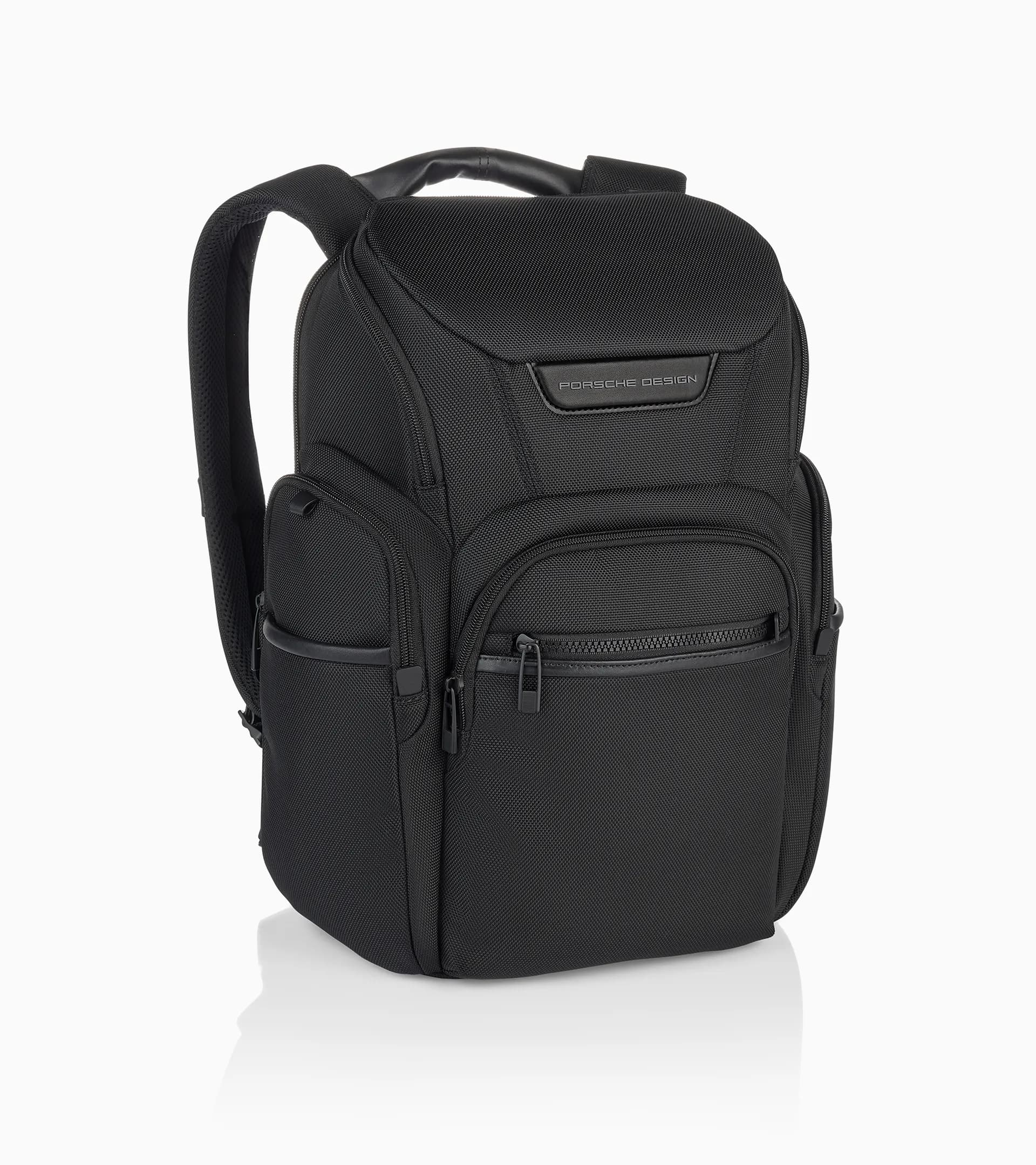 Uno zaino funzionale che unisce una strutturata praticità all'iconico design Porsche. Design sottolineato da dettagli di ispirazione Porsche, come le cerniere che richiamano gli interruttori a levetta e le cuciture decorative che ricordano i sedili delle auto.