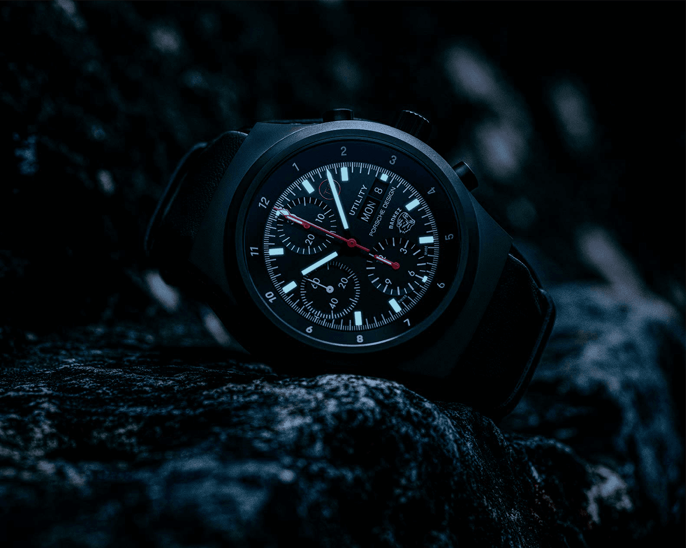 Il Cronografo 1 Utility – Edizione limitata detta nuovi standard in termini di robustezza ed estetica attraverso l'uso del carburo di titanio. Essendo il primo cronografo in vendita con questo materiale, Porsche Design è l'unico produttore di orologi a presentare un orologio realizzato interamente con questo materiale rivoluzionario.
