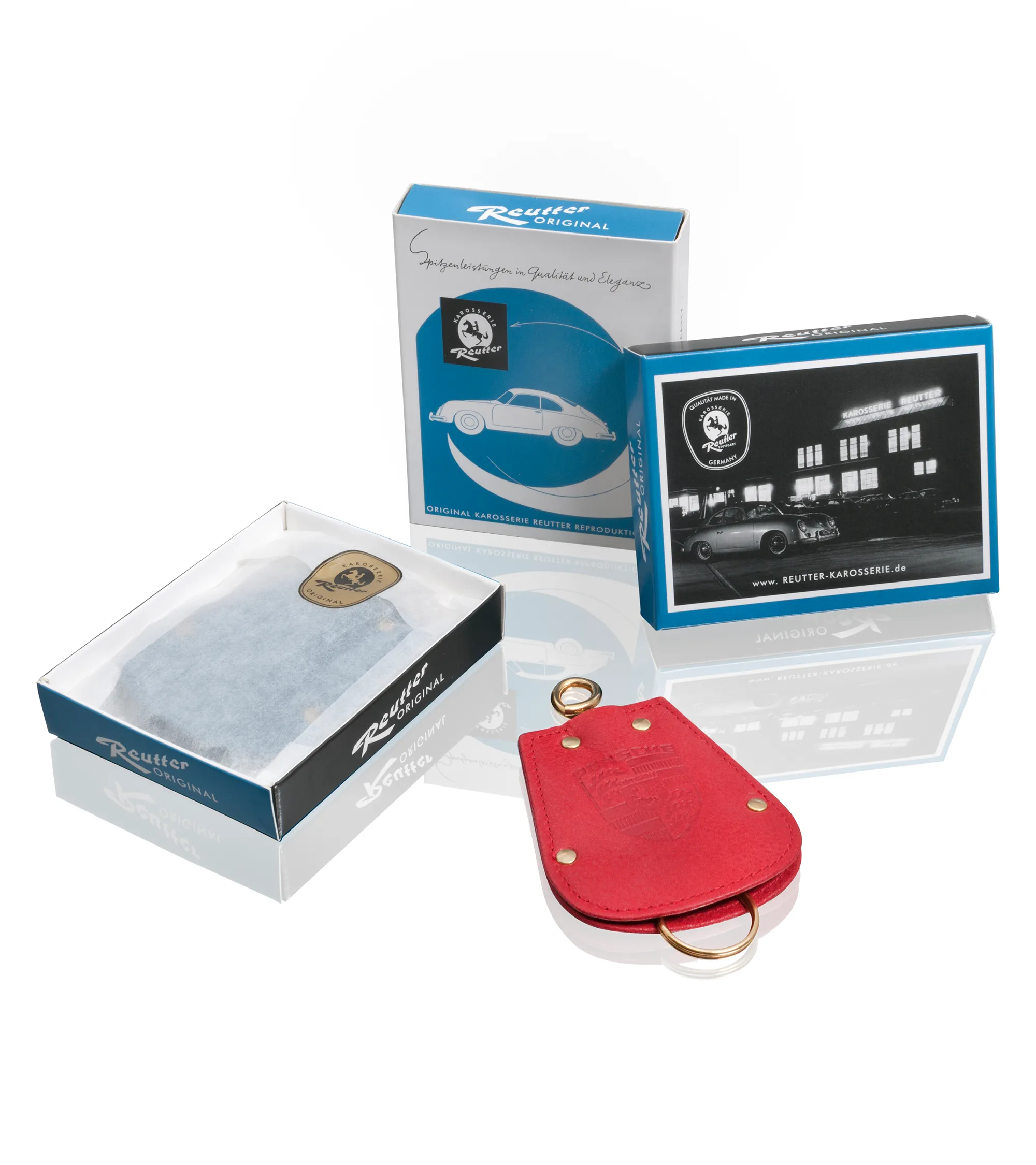 At that time, the key case was in the same colour as the interior and was attached to the vehicle key when the vehicle was handed over. The case is made entirely by hand in Germany in over 20 work steps based on original templates, with extensive research in the historical archives of Reutter and Porsche.