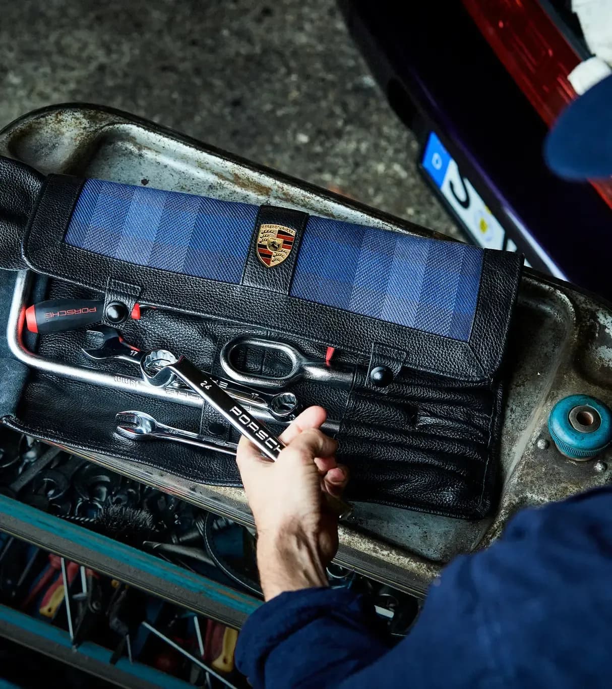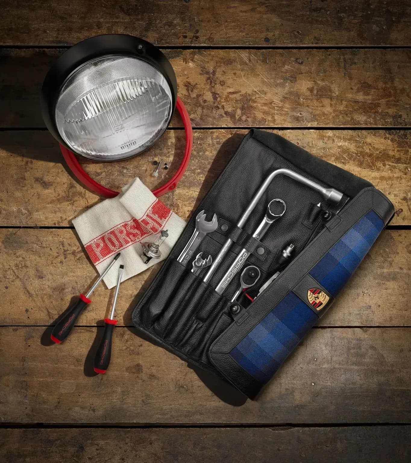 The contents have been reconstructed based on the original bag and reissued with the help of the technical drawings of the tools from the original suppliers from that time. The Porsche Classic team has given the bag some technical and visual upgrades where appropriate and added additional useful tools.