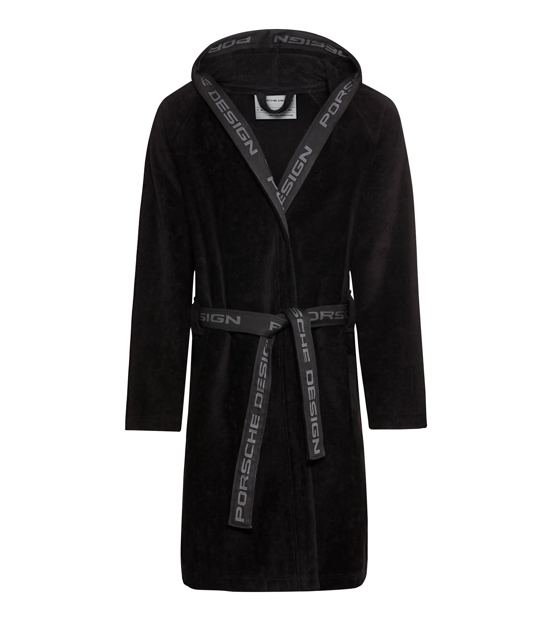 Der Bademantel, der Komfort und Dynamik vereint: Die Porsche Design Bathrobe aus hochwertigem Frotteevelours ist minimalistisch im Style, maximal bequem und unverkennbar exklusiv. Ein eingewebtes PD-Icon im Rücken betont die Qualität des weichen Materials, Porsche Design Logos innen, an der Kapuze und auf einer Seite des Gürtels verleihen dem geraden, knielangen Schnitt mit Raglan-Ärmeln und schrägen Eingrifftaschen sichtbare Exklusivität. Perfekt nach dem Gym oder in der Sauna. Ob Sie den Bademantel mit unifarbenem Gürtel oder mit Schriftzug tragen: Geschmacksache. Sicher ist: Sie werden ihn viel und gern tragen.