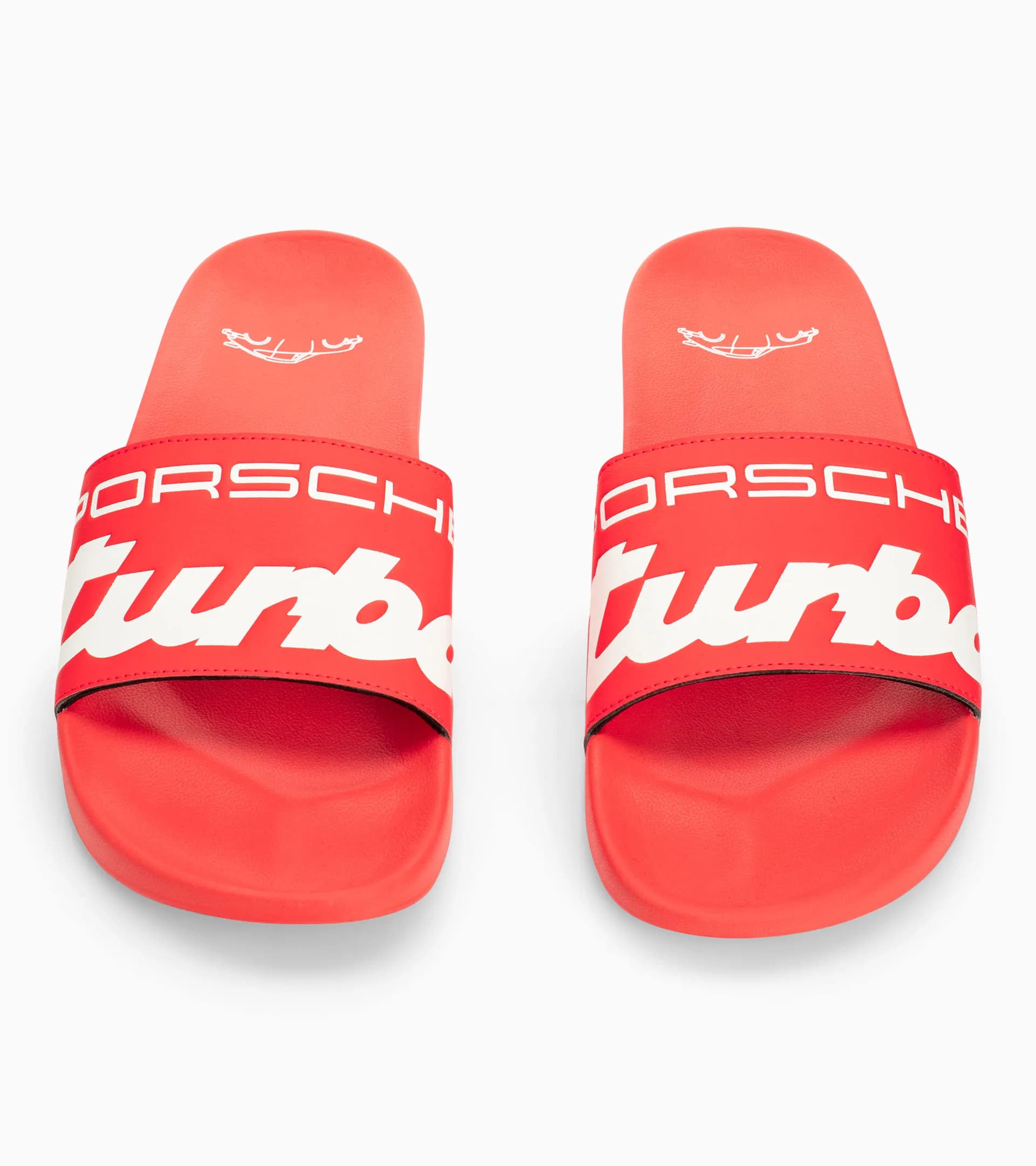Inspiriert vom unverwechselbaren Design des Porsche 911 Turbo, bietet die Porsche Legacy Kollektion Stil und Performance für jeden Tag. Mit den Porsche Turbo Slides werden Füße verwöhnt – dank des geformten Fußbetts und der IMEVA-Außensohle. Der ikonische Porsche Turbo Schriftzug machen sie zum wahren Eyecatcher.