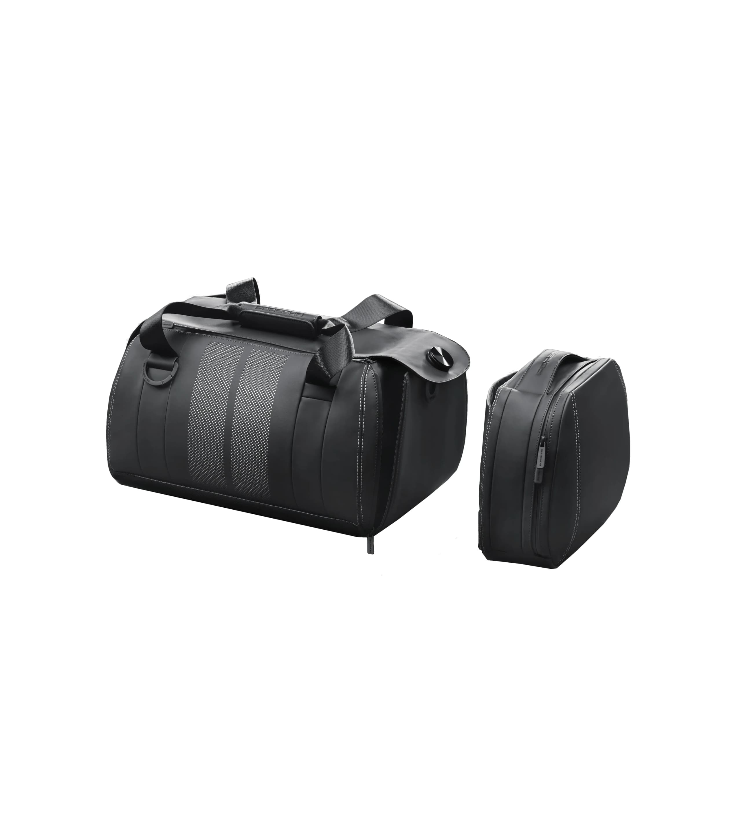 Alle Gepäckstücke werden aus hochwertigem Leder (in Schwarz) gefertigt und sind mit silbernen Ziernähten und einer silber hinterlegten Perforierung versehen.