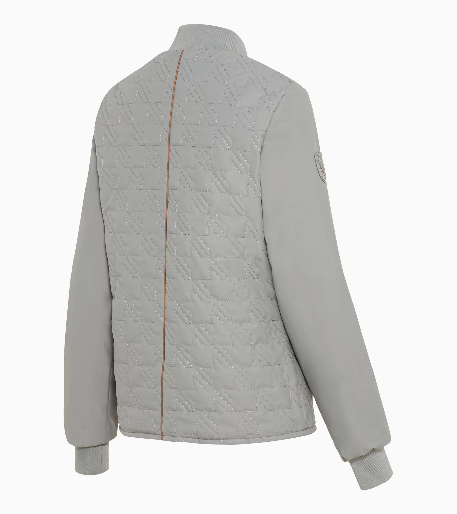 Zeitgeist, reloaded. Die leicht wattierte Wendejacke mit Baseball-Kragen bringt den Style der 60er zurück ins Hier und Jetzt. Dank vieler edler Design Details, wie zum Beispiel einer dekorativen Pepita-Absteppung im Body, „ICONS OF COOL“ und historischer Wappen Badges sowie eines gestickten Porsche Logos in Gold, wird die Porsche Historie neu interpretiert.