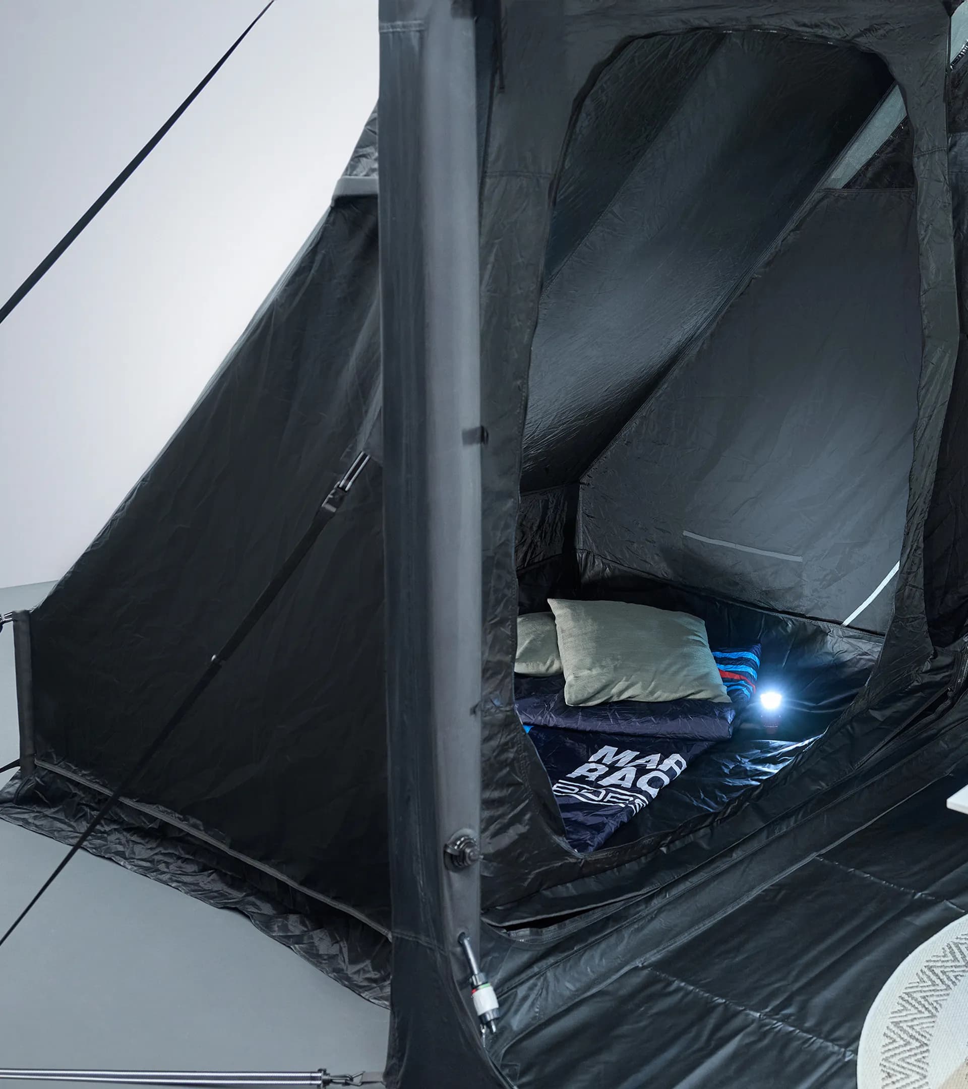 Partagez avec vos meilleurs amis la plus belle place au monde. Rien de plus facile : grâce à la tente annexe modulaire avec tente intérieure, qui peut servir de chambre pour les membres de la famille, les invités ou les quadrupèdes.