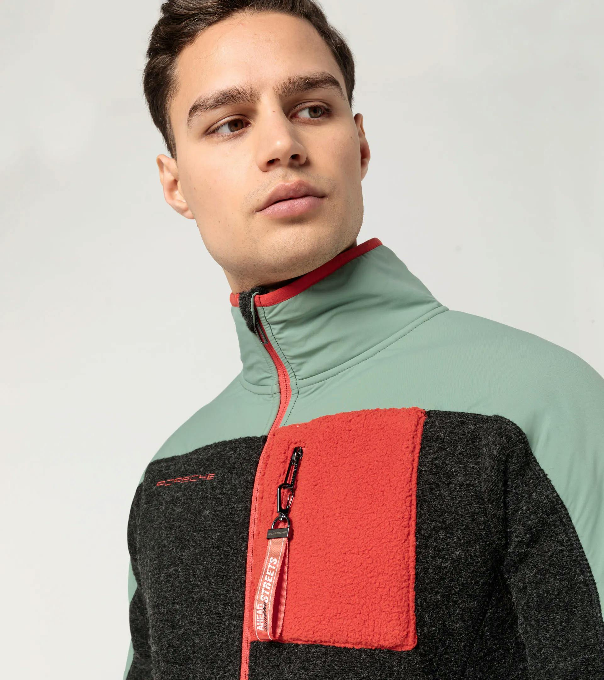 Une rencontre entre road trip et Lifestyle : la collection AHEAD allie esprit pionnier et envie d’aventure dans un design emblématique. Cette veste d’extérieur unisexe en polaire Teddy possède des atouts particuliers avec des applications de tissu de couleur contrastée au niveau des épaules et des manches, ainsi qu’une poche poitrine contrastée avec fermeture à glissière. L’inscription Porsche brodée sur le côté droit de la poitrine et un badge AHEAD distinctifau dos complètent le look. Un porte-clés amovible portant l’inscription « AHEAD » est fixé aux poches latérales, apportant au style une touche supplémentaire.