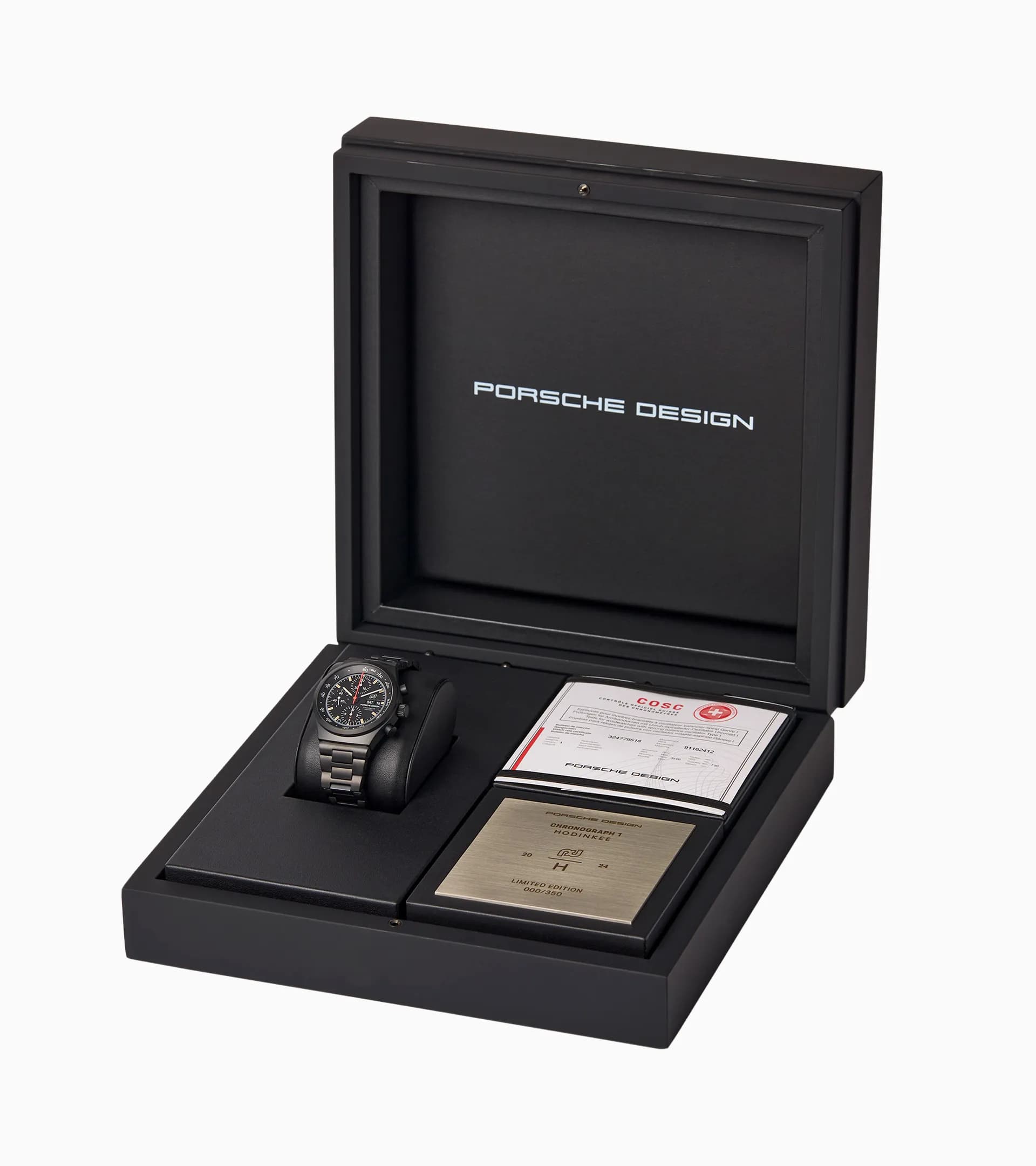 INSPIRED BY THE ORIGINAL. CURATED BY HODINKEE. Every good story needs a good storyteller. One who knows how to captivate from the first sentence and, with their words, takes us on a journey through time. Hodinkee has established itself as an outstanding curator of such stories from the world of exclusive watches. Together, we now want to add three new chapters to the multifaceted history of Porsche Design. We first asked ourselves: how would Professor Ferdinand Alexander Porsche have designed the Chronograph 1 today? After all, he is not only the designer of the timeless Porsche 911, but also the creator of the Chronograph 1. Together, we are now bringing this legend back to life and interpreting it in an impressive way as part of an exciting trilogy – for anyone who wants to feel the Porsche legend on their wrist.The first chapter: the Chronograph 1 – Hodinkee 2024 Edition. With the patina of 50 years, featuring the design of the original, while incorporating the latest technology. Handcrafted in the Porsche watch factory in Solothurn, Switzerland. Strictly limited to 350 pieces.