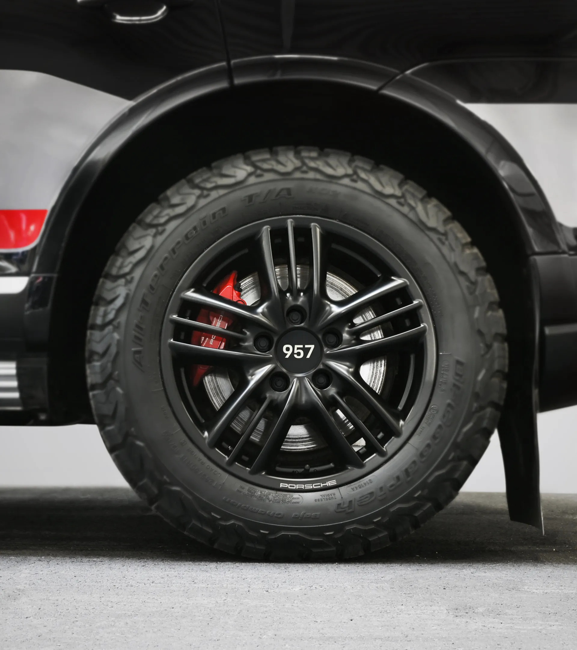 '957' hub cap, matt black, suitable for Cayenne E1 from model years 2001 to 2010.