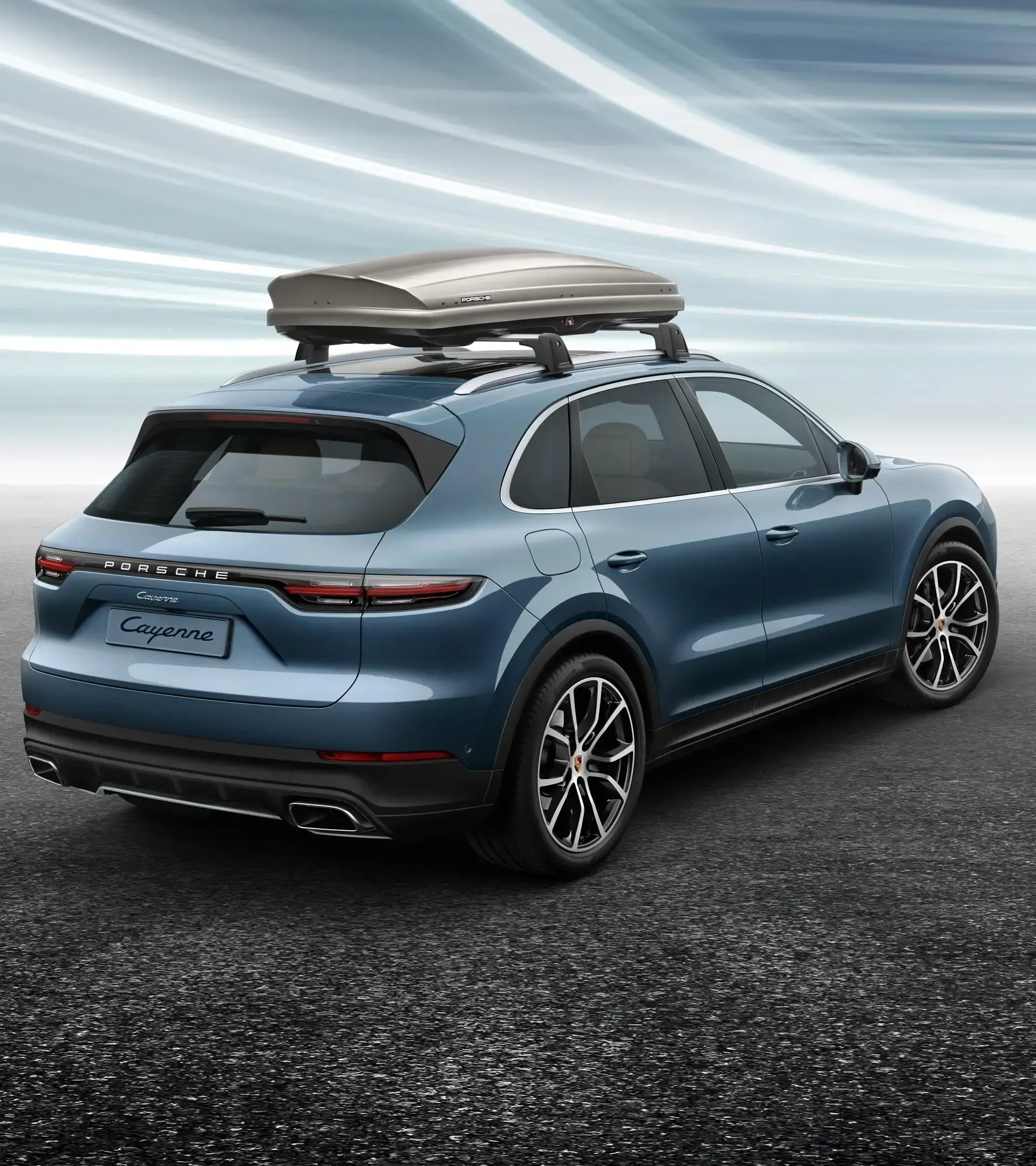 Coffre de toit en plastique verrouillable avec porte-skis intégrés.