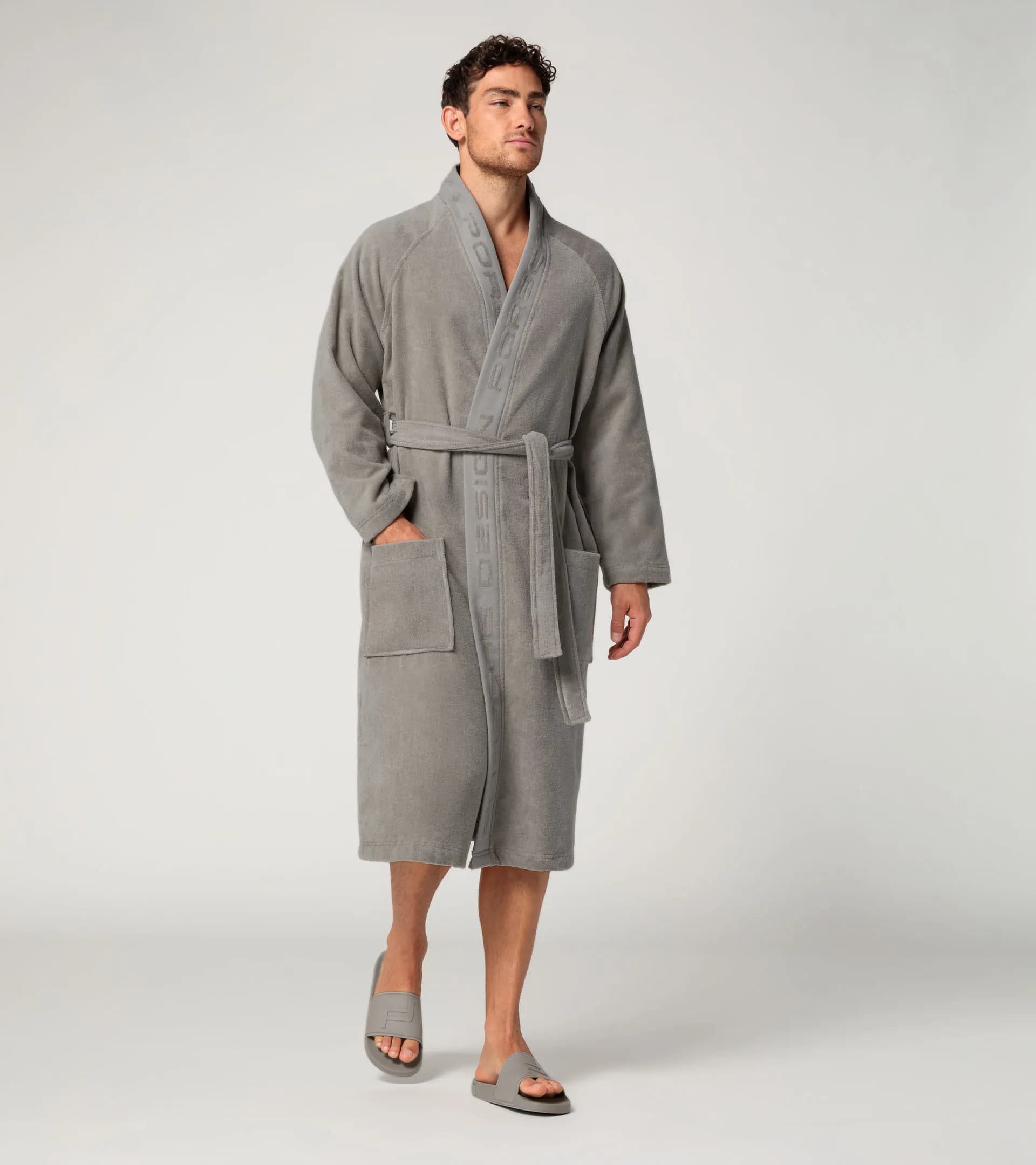 Peignoir confortable de Porsche Design avec de grandes poches, un élégant col châle et une ceinture pratique.