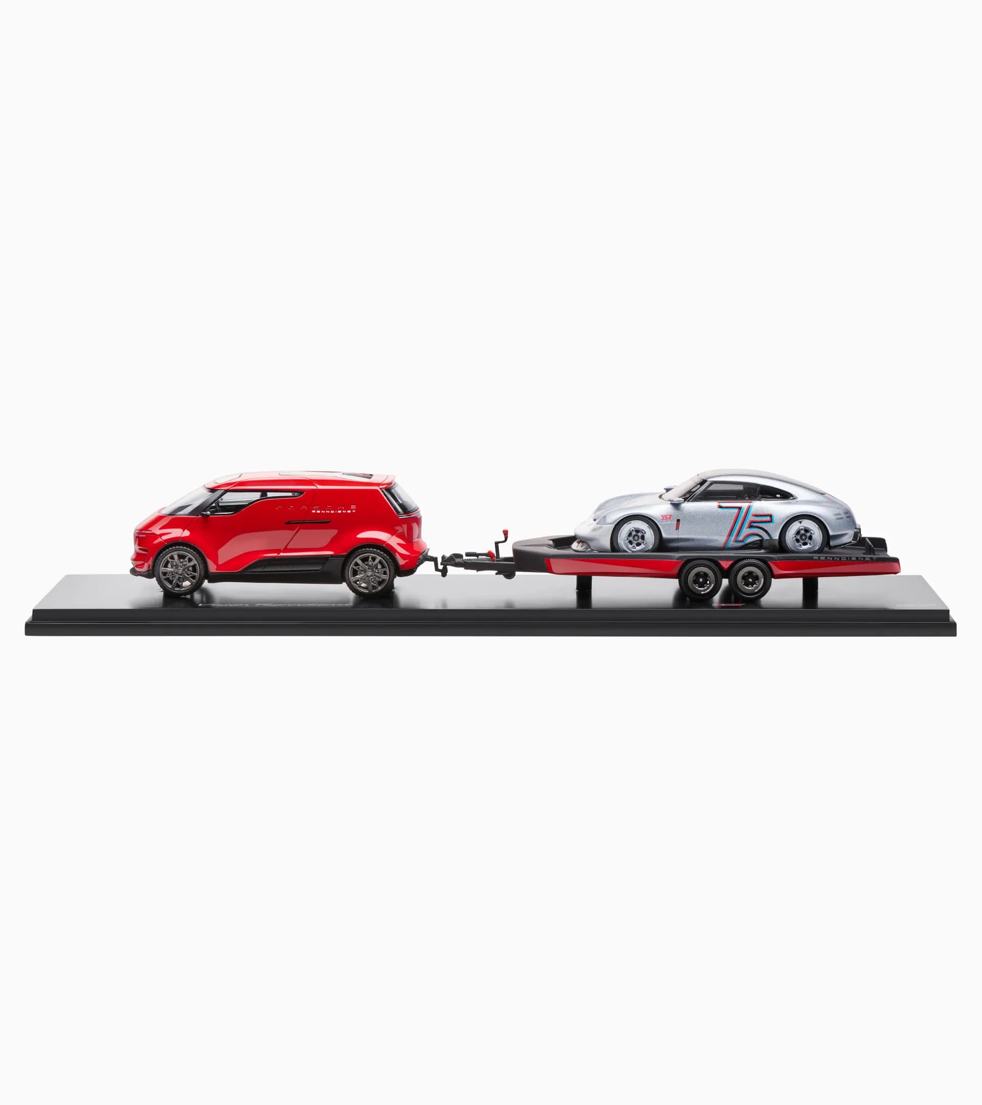 Ce modèle exclusif du Porsche Vision Renndienst avec la Porsche Vision 357, réalisé à l’échelle 1:43, se distingue par son souci du détail et constitue une pièce incontournable de toute collection. L’emballage fourni en fait également un cadeau idéal pour tous les passionnés de Porsche. Composé de résine. Extérieur Vision Renndienst Rouge, intérieur Noir. Extérieur Vision 357 Multicolore, intérieur Noir.