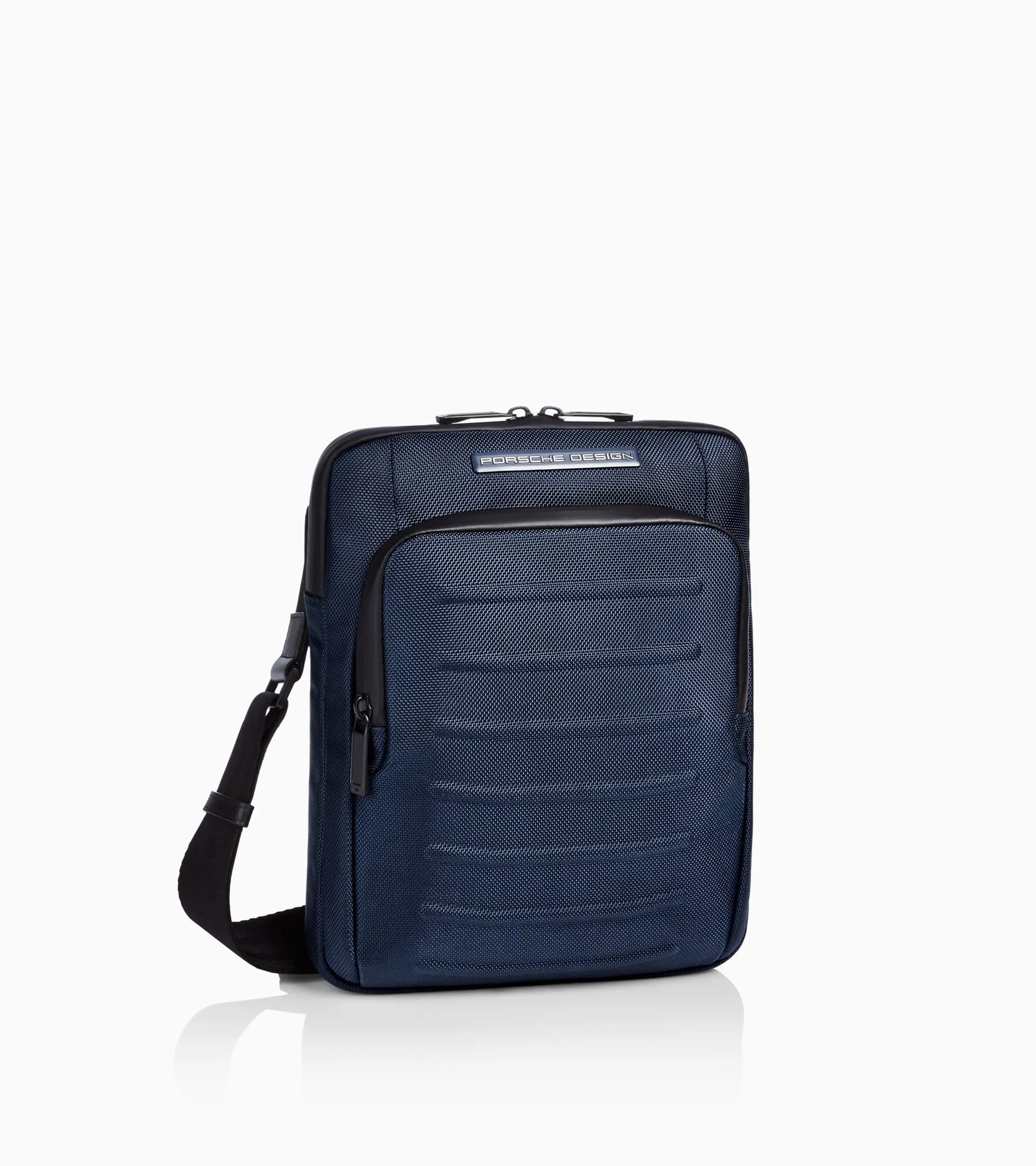 Compacte tas om om te hangen van Porsche Design gemaakt van waterafstotend materiaal. In het hoofdvak past een tablet.