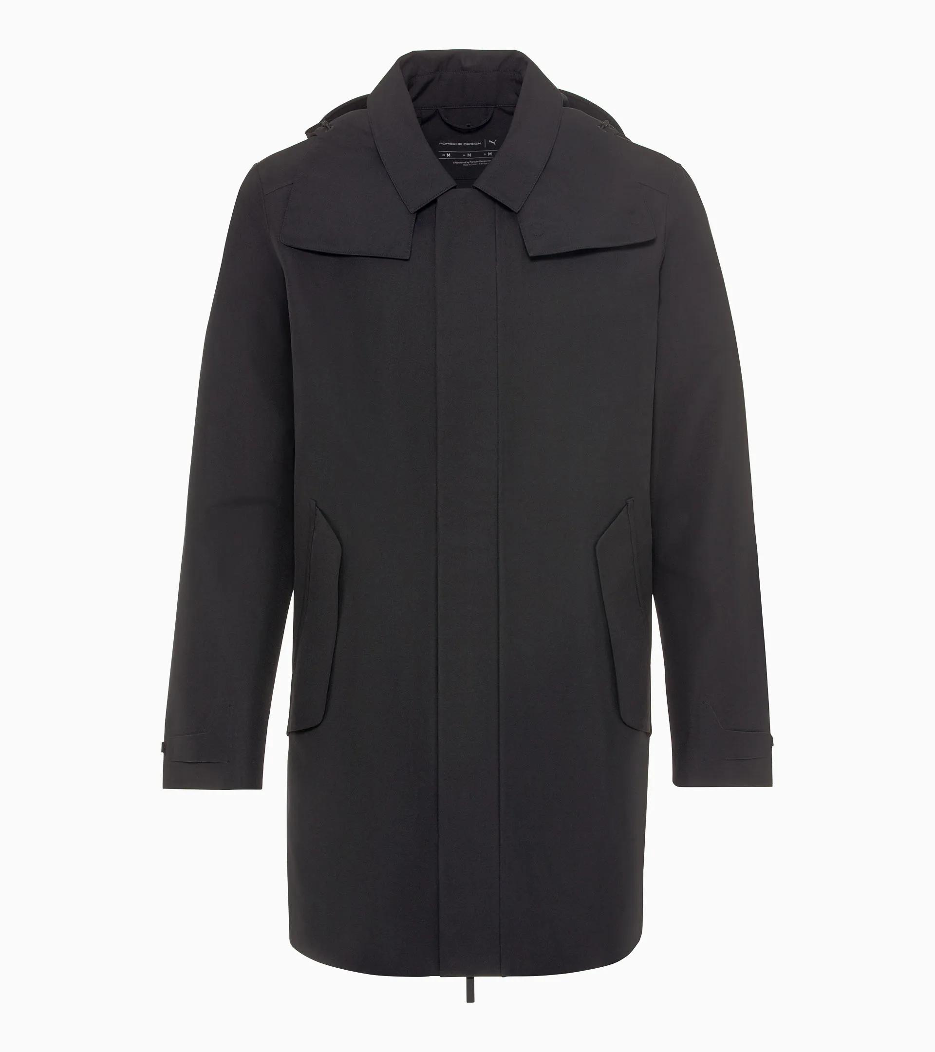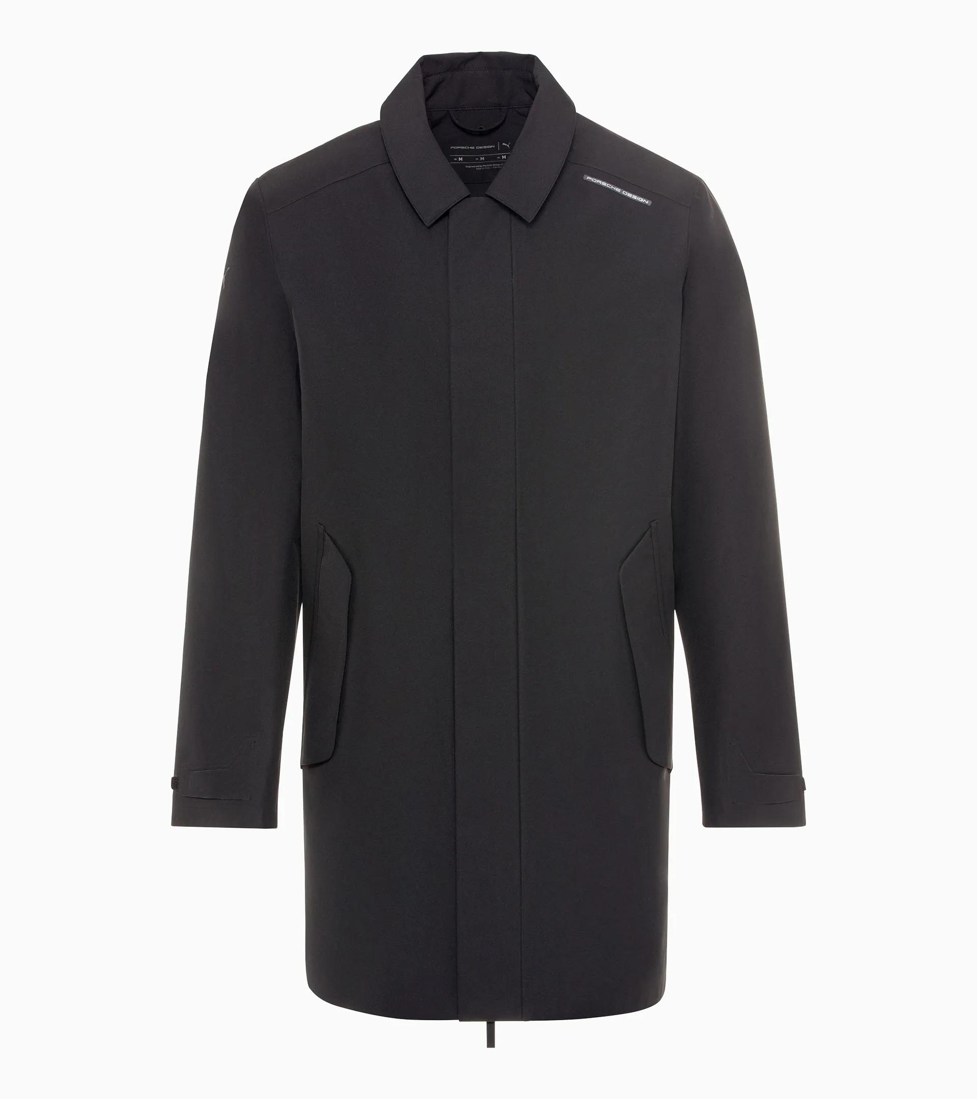 100% waterdicht. 100% gerecycled. 100% statement-piece. De premium trenchcoat met drielaags Sympatex®-materiaal past zich dynamisch aan wind en regen aan en biedt zo optimale bescherming, ademend vermogen en comfort. Dankzij de afneembare capuchon biedt de jas veelzijdige draagmogelijkheden. De zijzakken met magneetsluiting zijn uiterst praktisch. Met een waterkolom van 20.000 mm garandeert deze jas absolute waterdichtheid. Een bijzonder designdetail is een citaat van professor Ferdinand Alexander Porsche aan de binnenkant. Klittenbandsluitingen aan de uiteinden van de mouwen en een binnenzak met extra autosleutelvakje maken het goed doordachte ontwerp helemaal af.