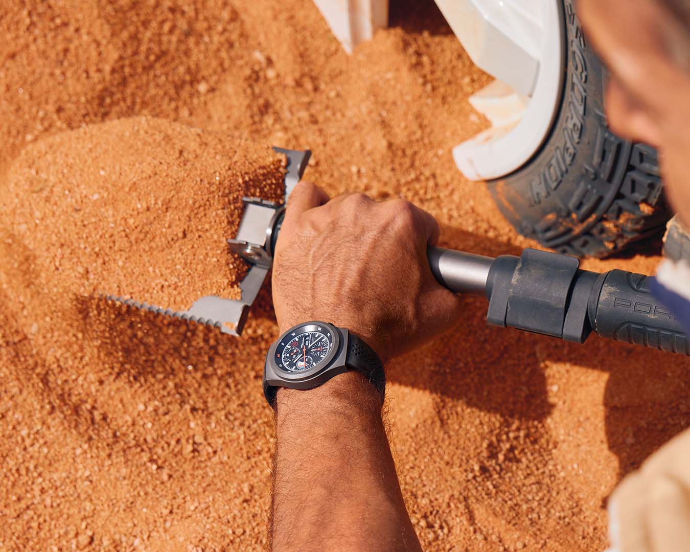 Only one thing counts in the Dakar Rally – arriving. To achieve this, engineers and drivers push themselves to their limits and conquer new terrain in every respect. Just like the specialists at Porsche's own watchmaking workshop in Solothurn, Switzerland. Over years of development work, they have created the world's first chronograph case made of titanium carbide: for the new Chronograph 1 – 911 Dakar and 911 Dakar Rallye Design Edition. The revolutionary