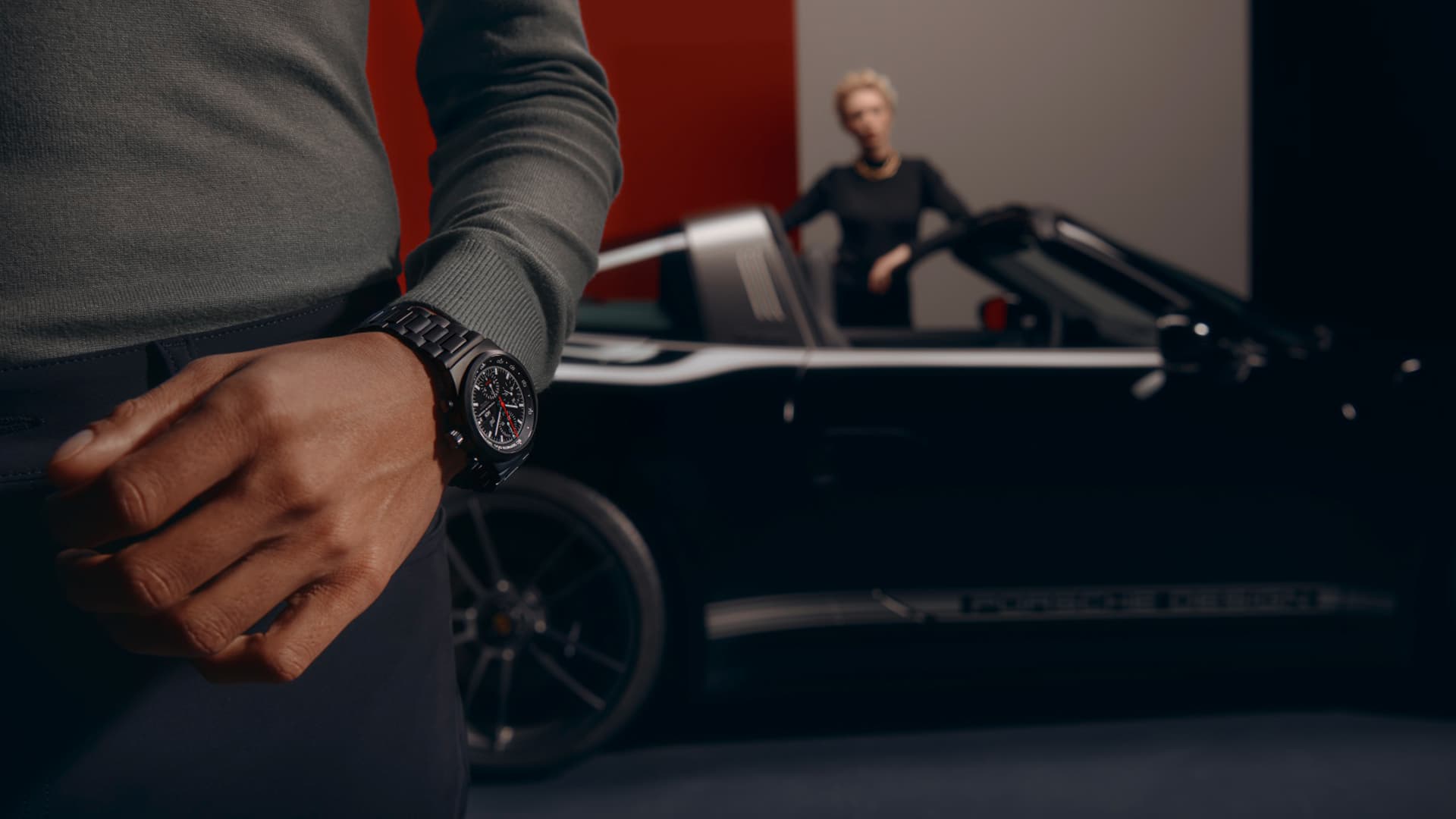 The Chronograph 1 – 911 Edition 50 Years Porsche Design revives a piece of contemporary history: classic design meets the high-performance concept of the Porsche 911 Targa 4 GTS. This exclusive timepiece is reserved exclusively for buyers of the limited-edition Porsche 911 Edition 50 Years of Porsche Design special model and is inseparably linked to the sports car and its owner via an engraved limited-edition number on the case back.
