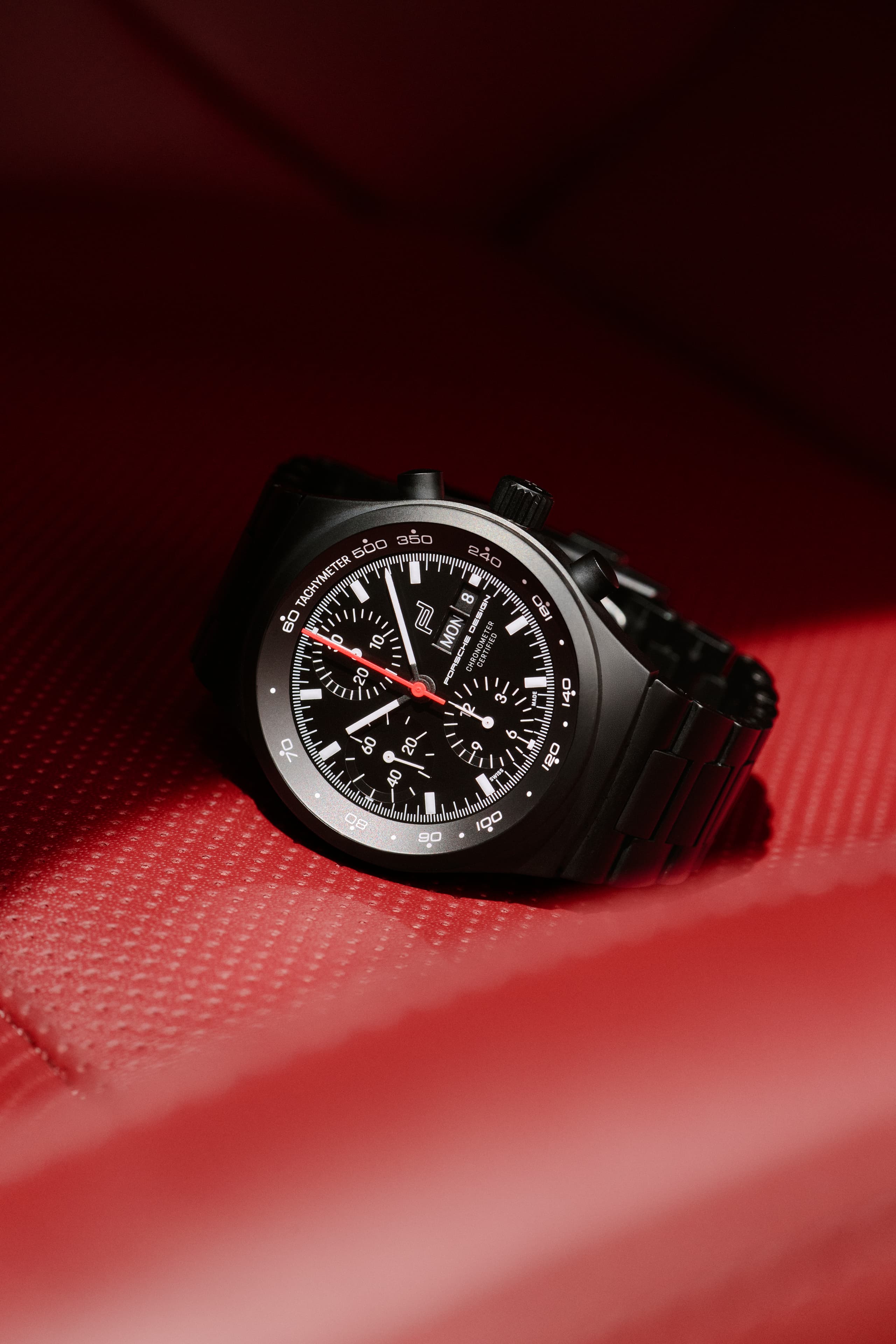 F. A. Porsche heeft de reflectievrije logica van de 911-cockpit laten terugkomen in de chronograaf: mat, contrastrijk en met weinig reflectie. Hierdoor is de wijzerplaat zelfs onder dynamische omstandigheden goed afleesbaar. Dit principe bepaalt de afleesbaarheid van de huidige uurwerken.