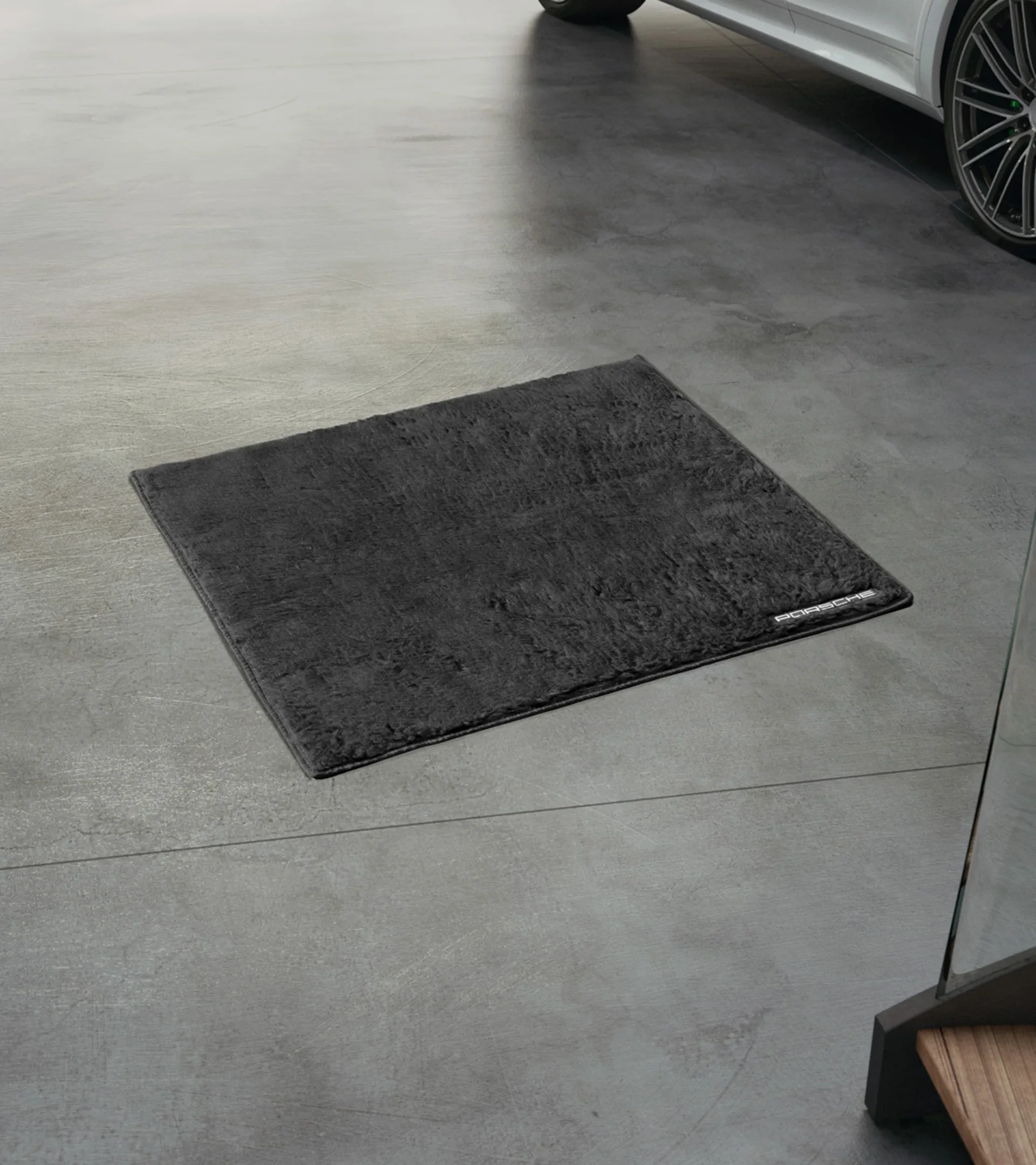 Det grå hundeteppet er optimalt tilpasset Porsche-bagasjeromsburet for hunder. Med «PORSCHE»-logoen er det det perfekte ekstrautstyret for hunden og Porschen din.