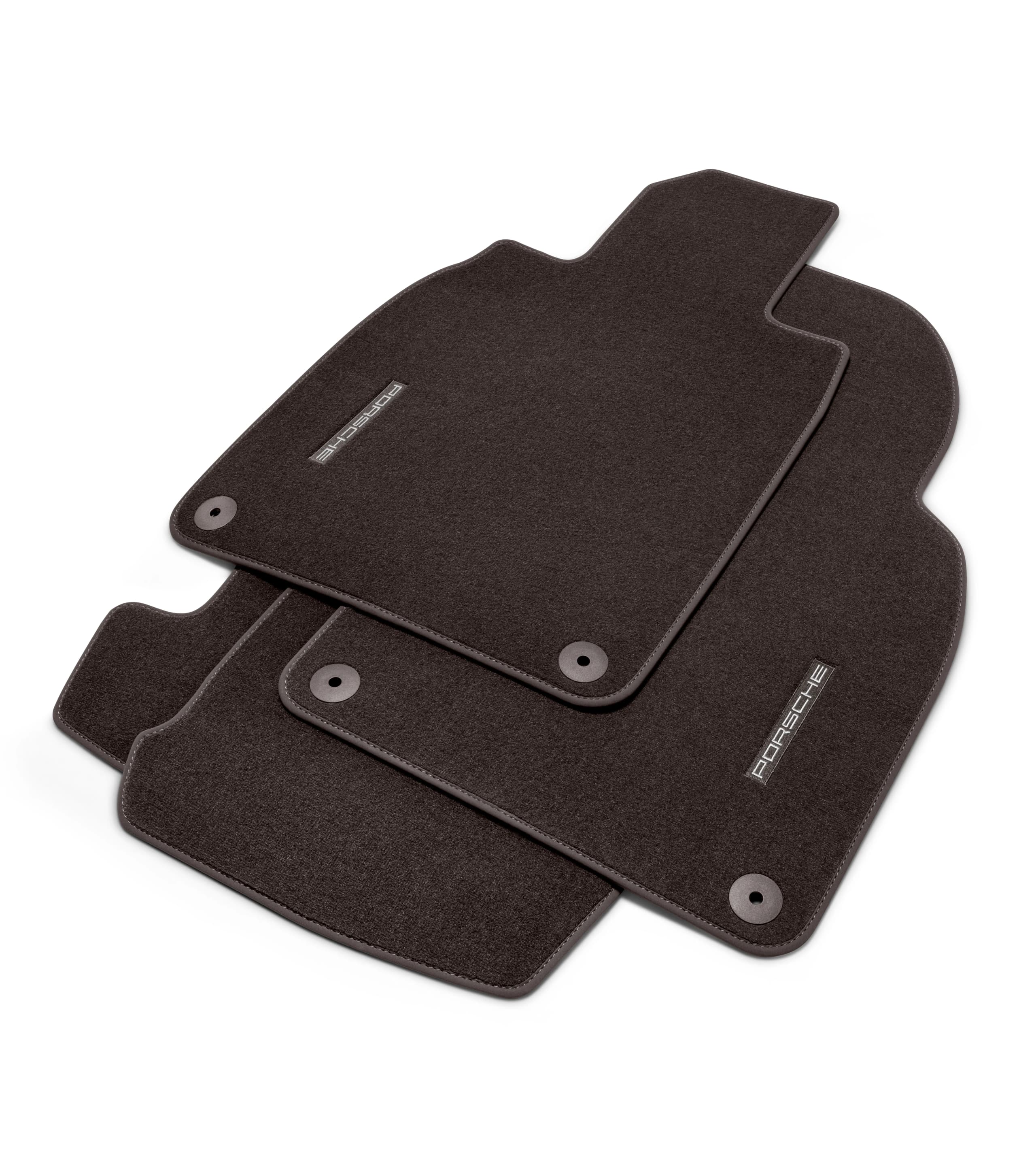 I utvalgte interiørfarger, med nubuckkant og innlegg med brodert, sølvfarget "PORSCHE"-tekst.
