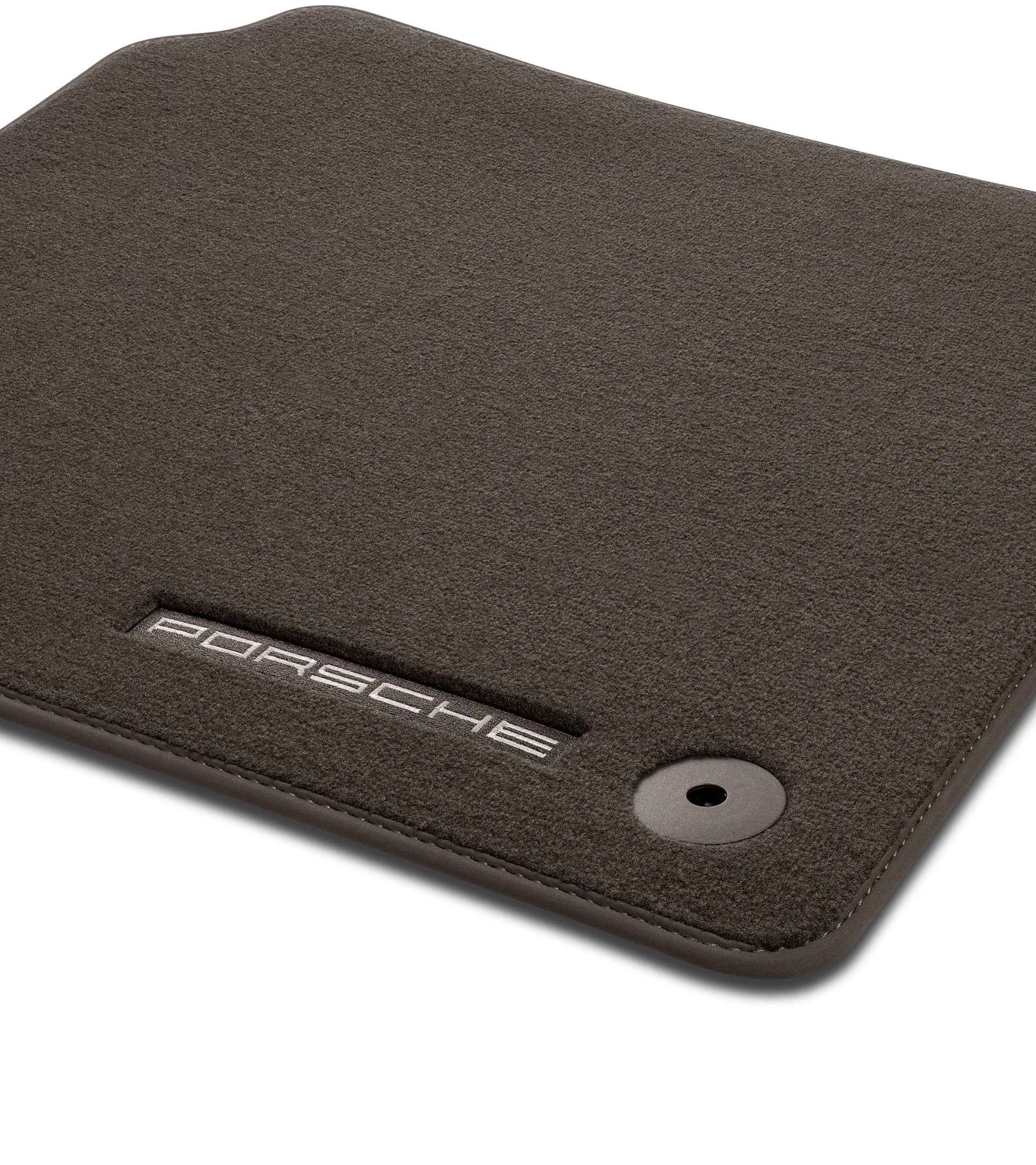 Czteroczęściowy zestaw, w wybranych kolorach wnętrza, z obszyciem z nubuku i wstawką z wyszywanym srebrnym logo „PORSCHE”.