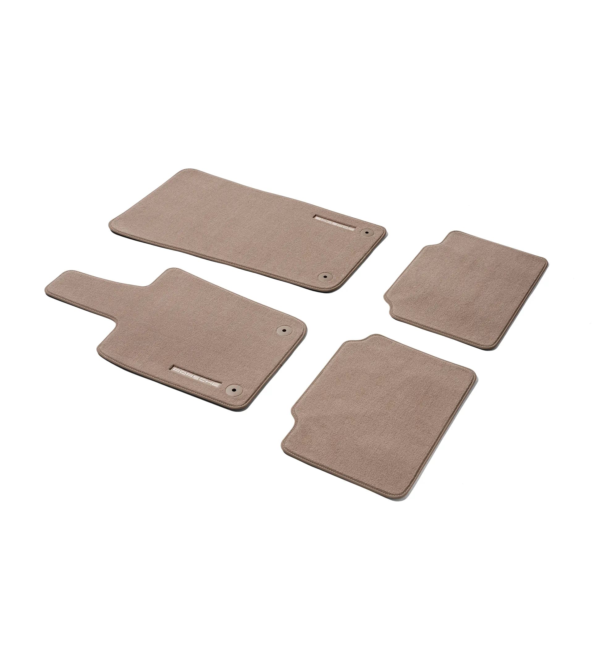 Czteroczęściowy zestaw, w wybranych kolorach wnętrza, z obszyciem z nubuku i wstawką z wyszywanym srebrnym logo „PORSCHE”.