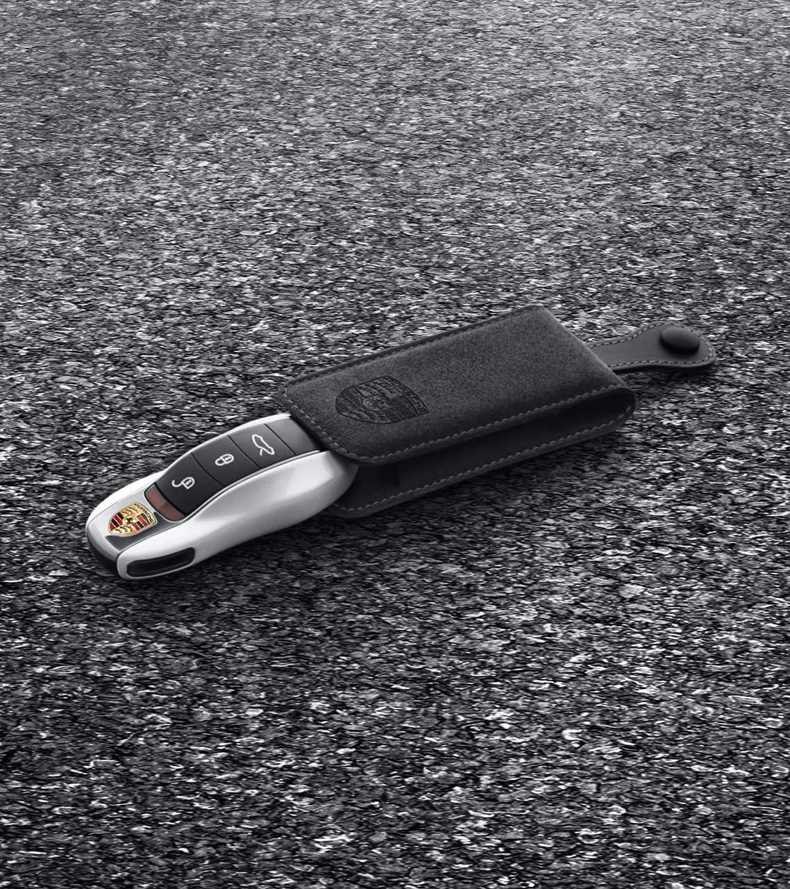 Wykonane z materiału Alcantara® w kolorze czarnym. Wcięcie w klapce oraz panele boczne wykonane są z czarnej skóry. Z ozdobnymi przeszyciami w wybranych kolorach i herbem Porsche.