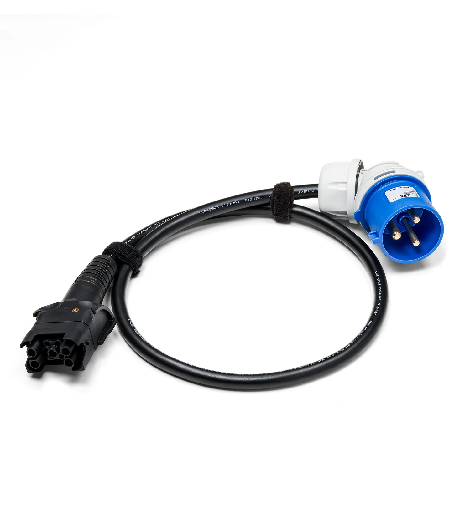 Kabel do ładowania do gniazda przemysłowego CEE 16 A jednofazowy o długości 1 m.