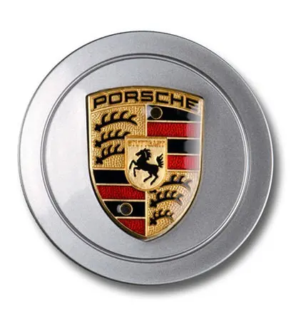 Hub cap in GT Silver Metallic with coloured crest for Porsche 996 Turbo S special model.