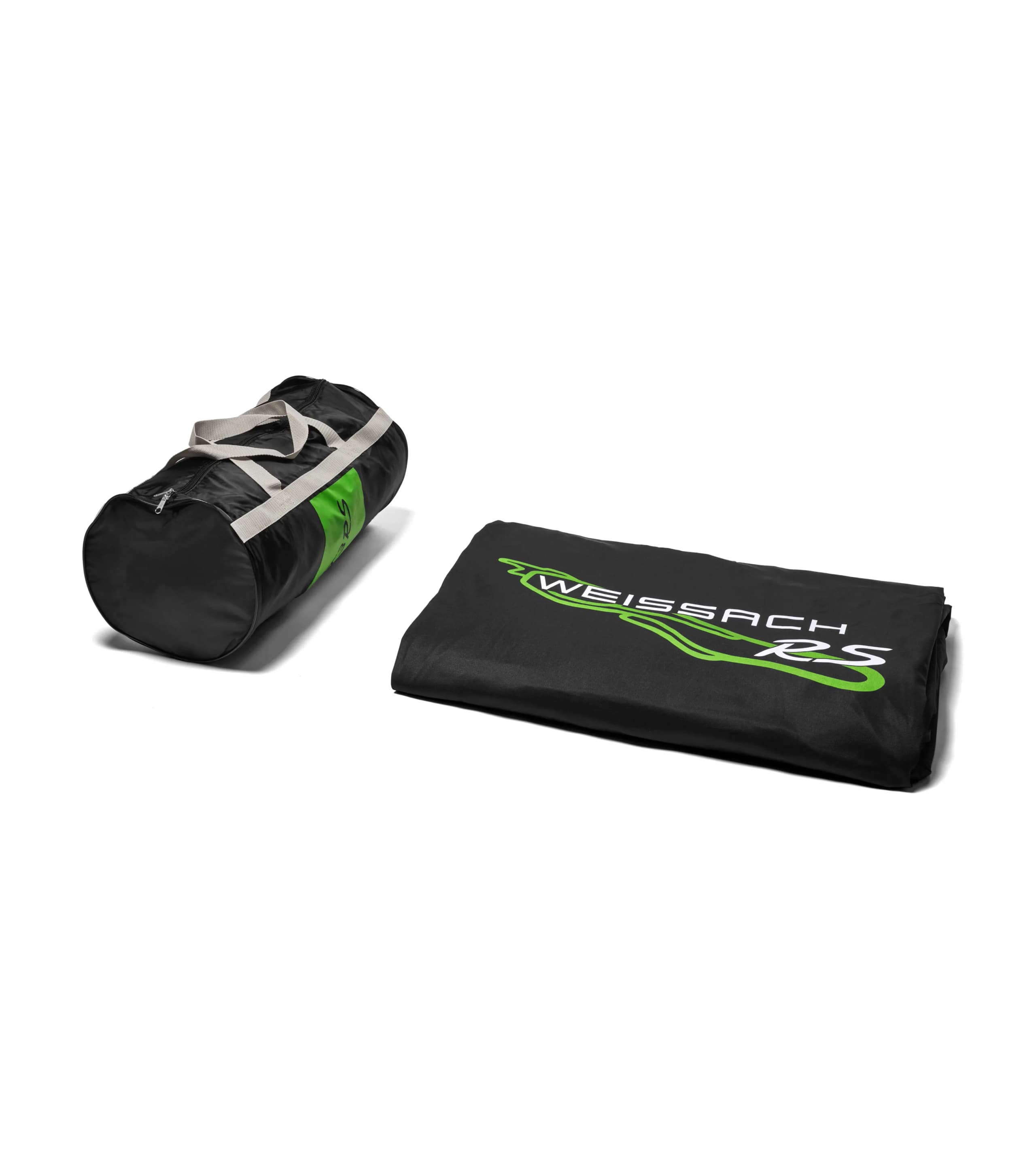 Dopasowany czarny pokrowiec na samochód do użytku w pomieszczeniach, wykonany z oddychającego, antystatycznego i odpornego na zabrudzenia materiału. W stylistyce 911 GT3 RS z lamówką w kolorze soczystej zieleni, logo „Weissach” w kolorze białym i soczystym zielonym na masce, z oznaczeniem modelu z boku i białym napisem „PORSCHE” na tylnym skrzydle.