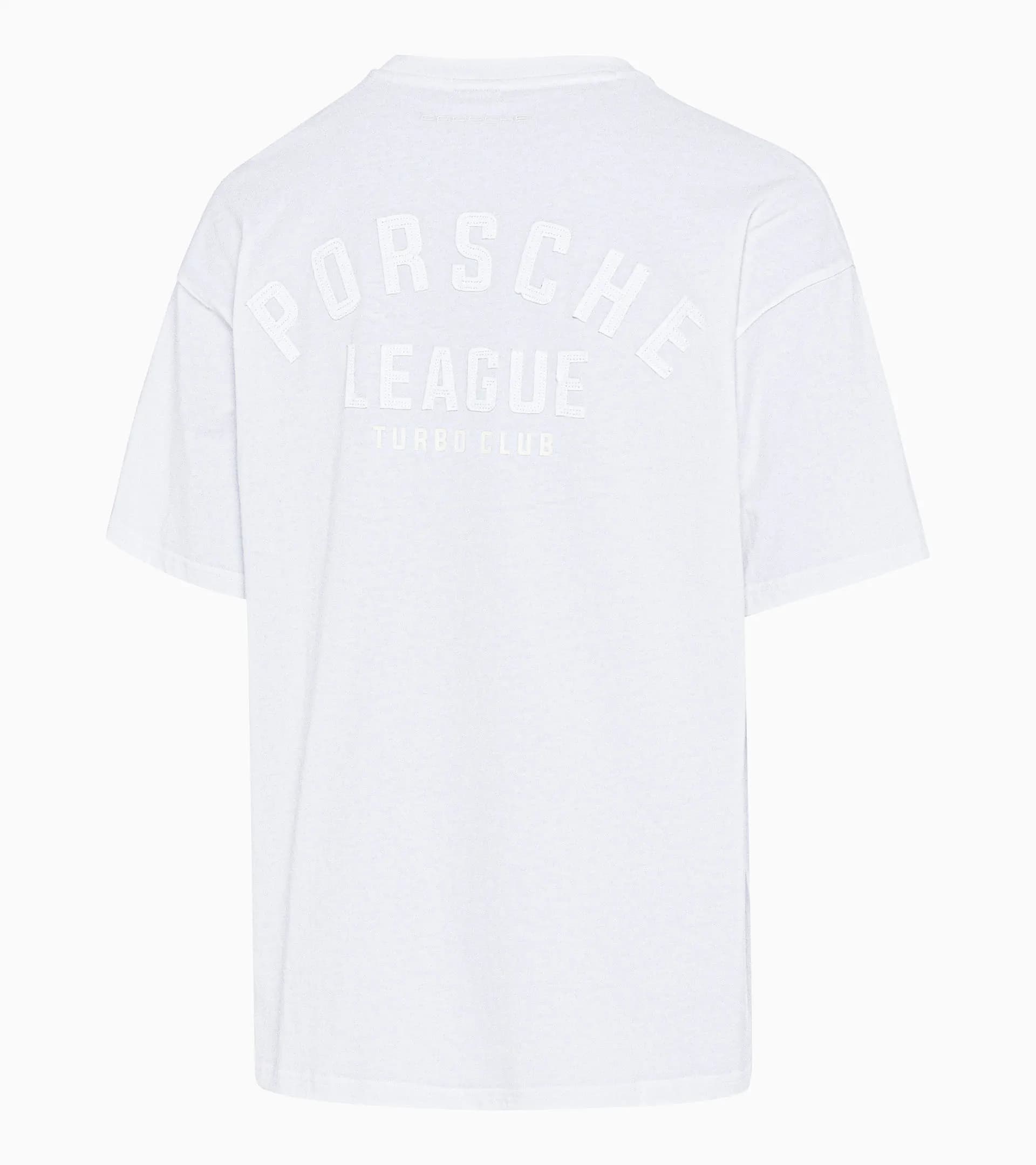 T-shirt z grubej bawełny z kultowym designem Porsche. Z napisem „Porsche League Turbo Club” z przodu i retro aplikacją materiałową z tyłu.