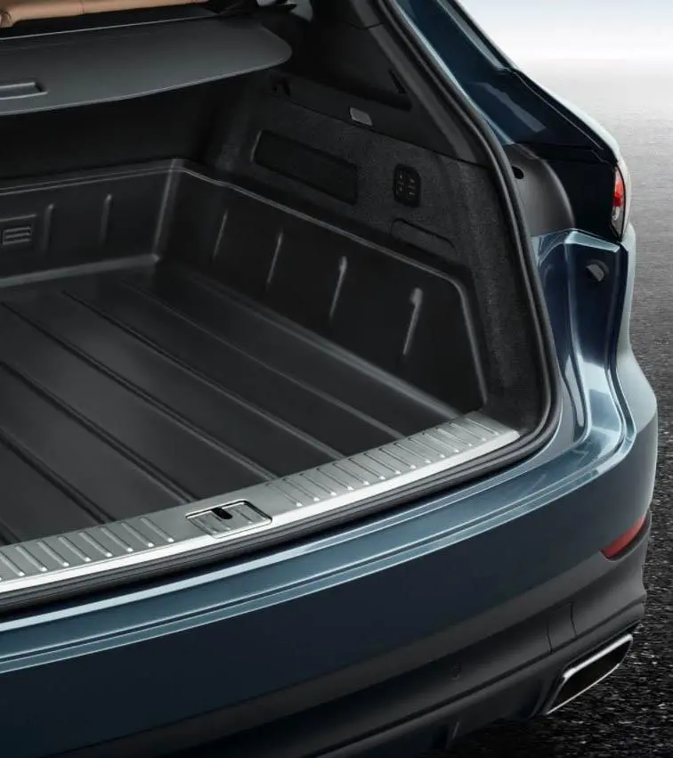 Dopasowany wkład do bagażnika z napisem „PORSCHE”. Nie przepuszcza wody i można go myć.