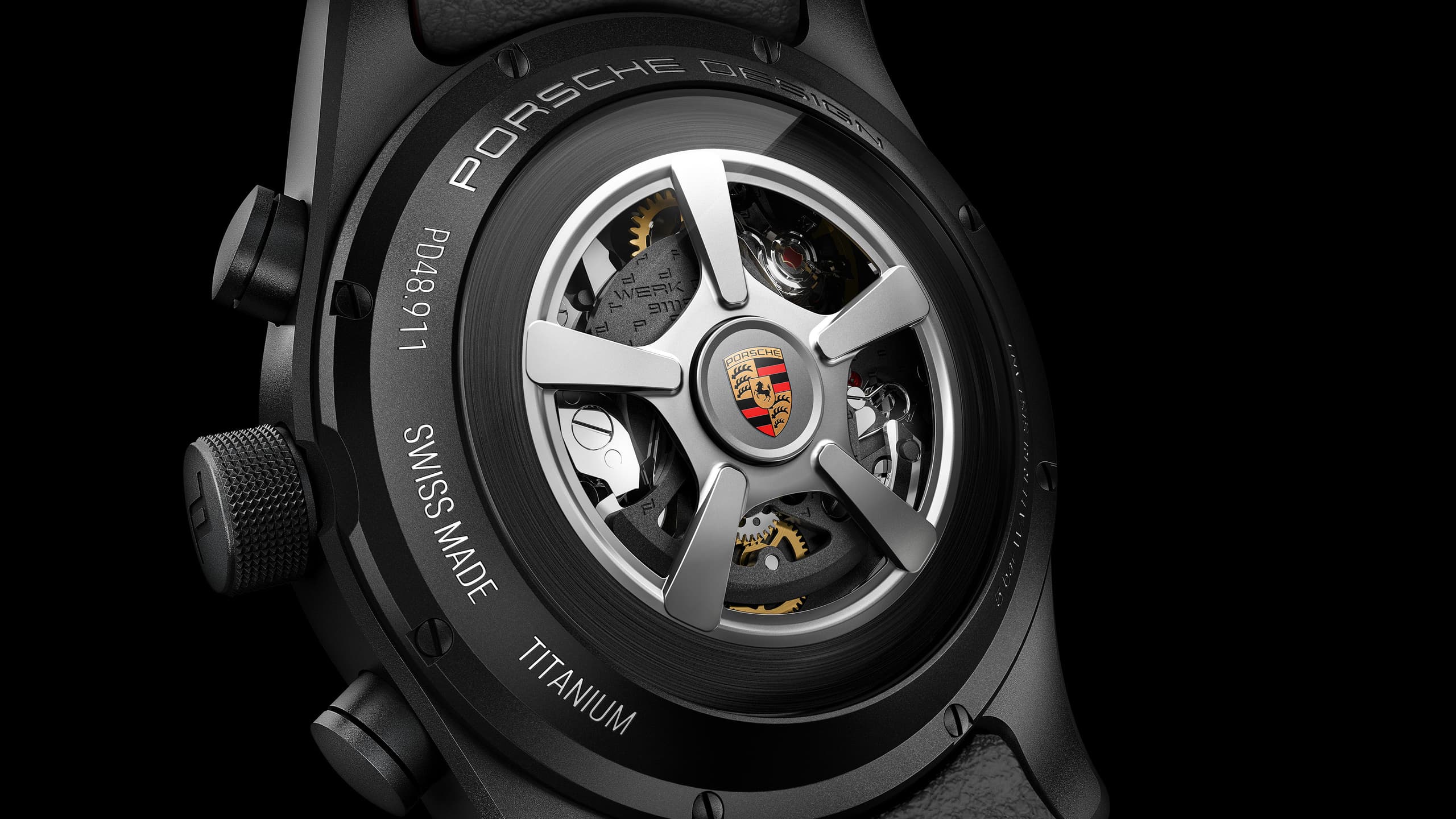 Wewnątrz każdego zegarka, zaprojektowanego indywidualnie przez jego właściciela, bije serce mechanizmu napędzanego za pomocą wahnika. Do wyboru jest charakterystyczny wahnik z ikoną PD w klasycznej czerni lub wahnik w kształcie koła 911. Każdy wahnik jest ozdobiony efektowną osłoną piasty koła z herbem Porsche. Wewnątrz znajduje się kaliber chronografu PD WERK 01.100 – kaliber z certyfikatem COSC, który łączy w sobie wiedzę inżynieryjną i zegarmistrzowską, tworząc techniczne arcydzieło.