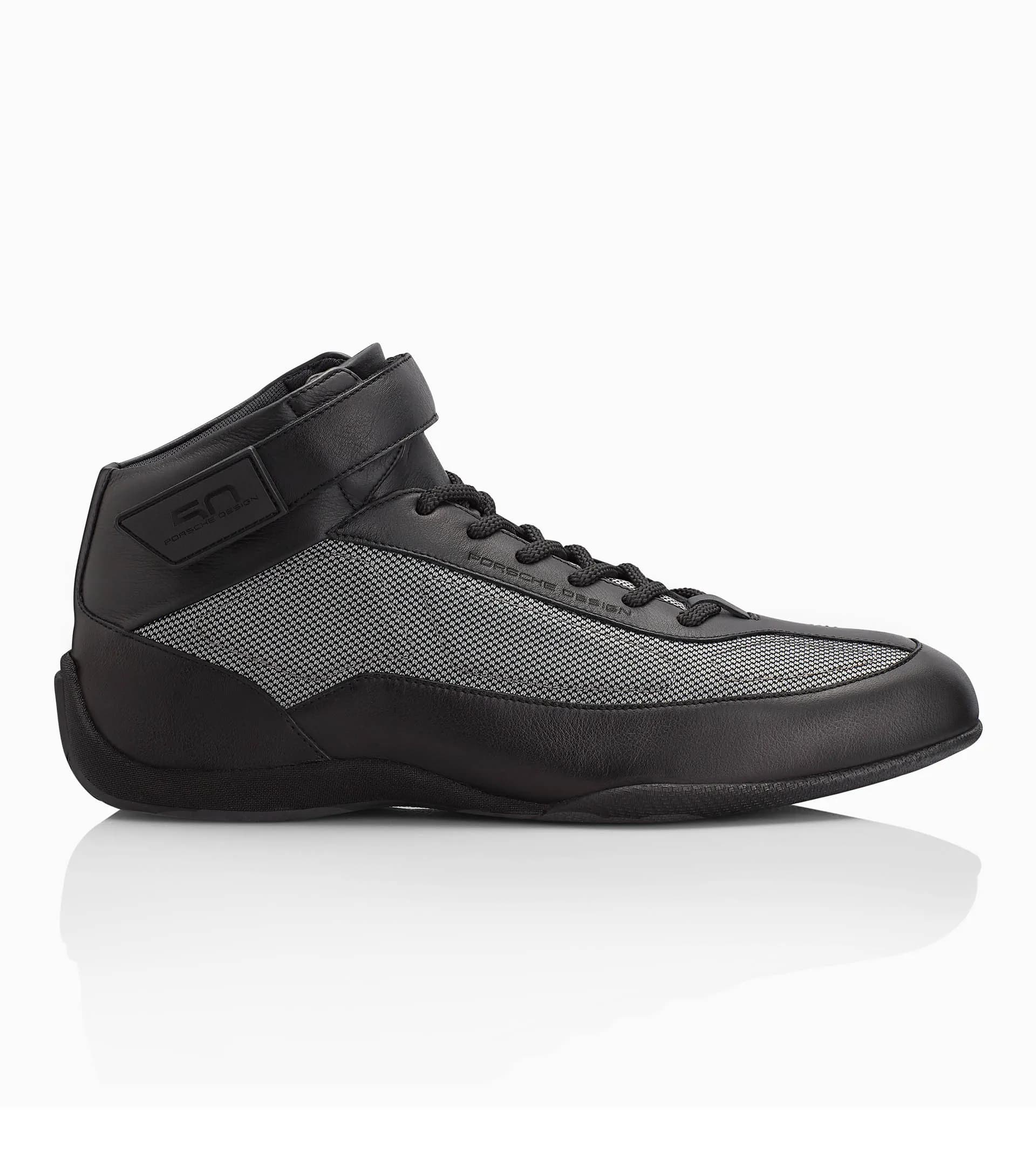 Sapatilhas de designer para homem da coleção limitada 50Y Porsche Design Collection. O calçado desportivo exclusivo em malha e couro com estilo do desporto motorizado é fabricado em Itália.