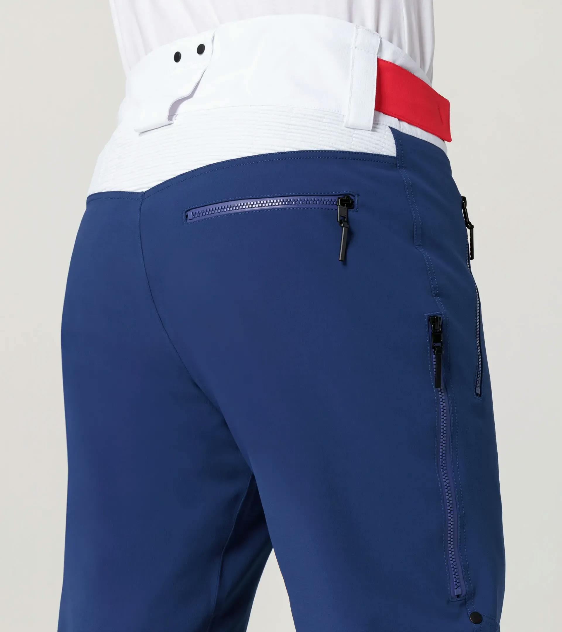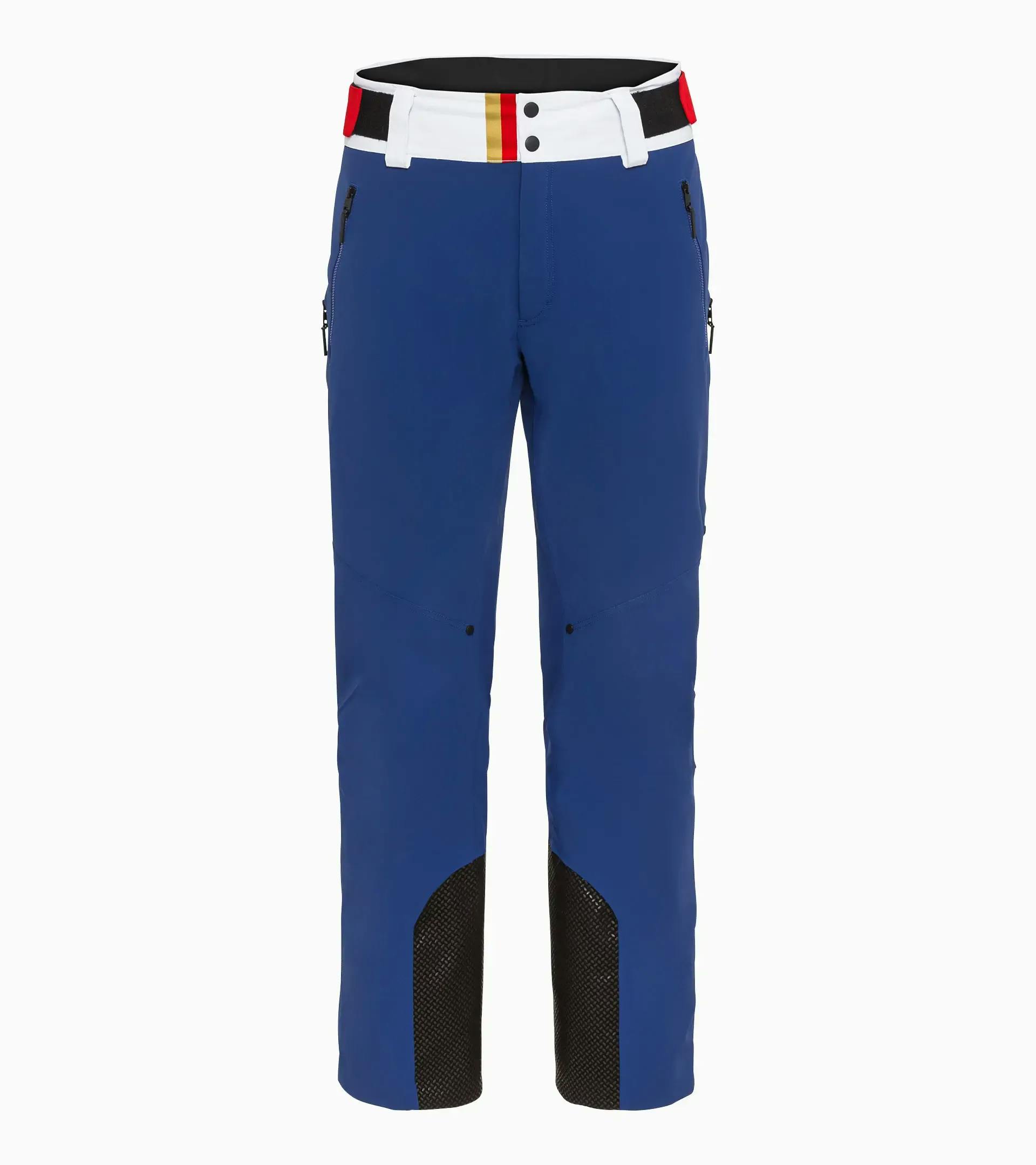 Calças de esqui de designer para homem da coleção exclusiva PORSCHE HEAD em design Dakar. Forradas com material quente, corta-vento e repelente de água. Com ventilação e proteção contra cortes.