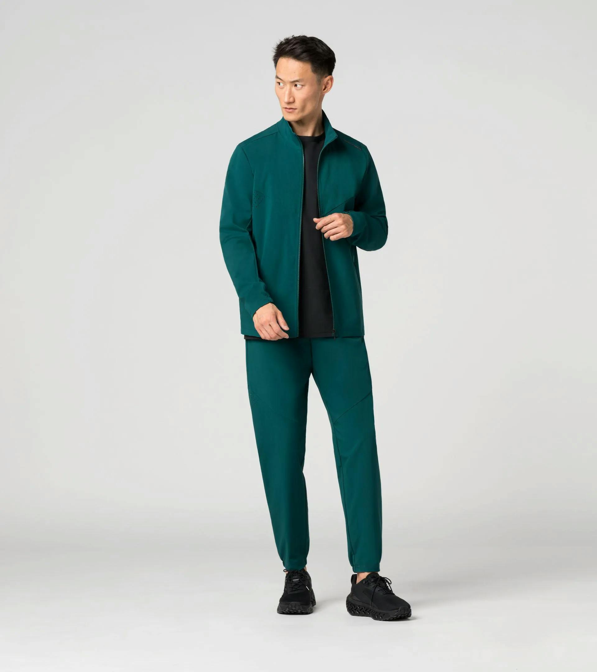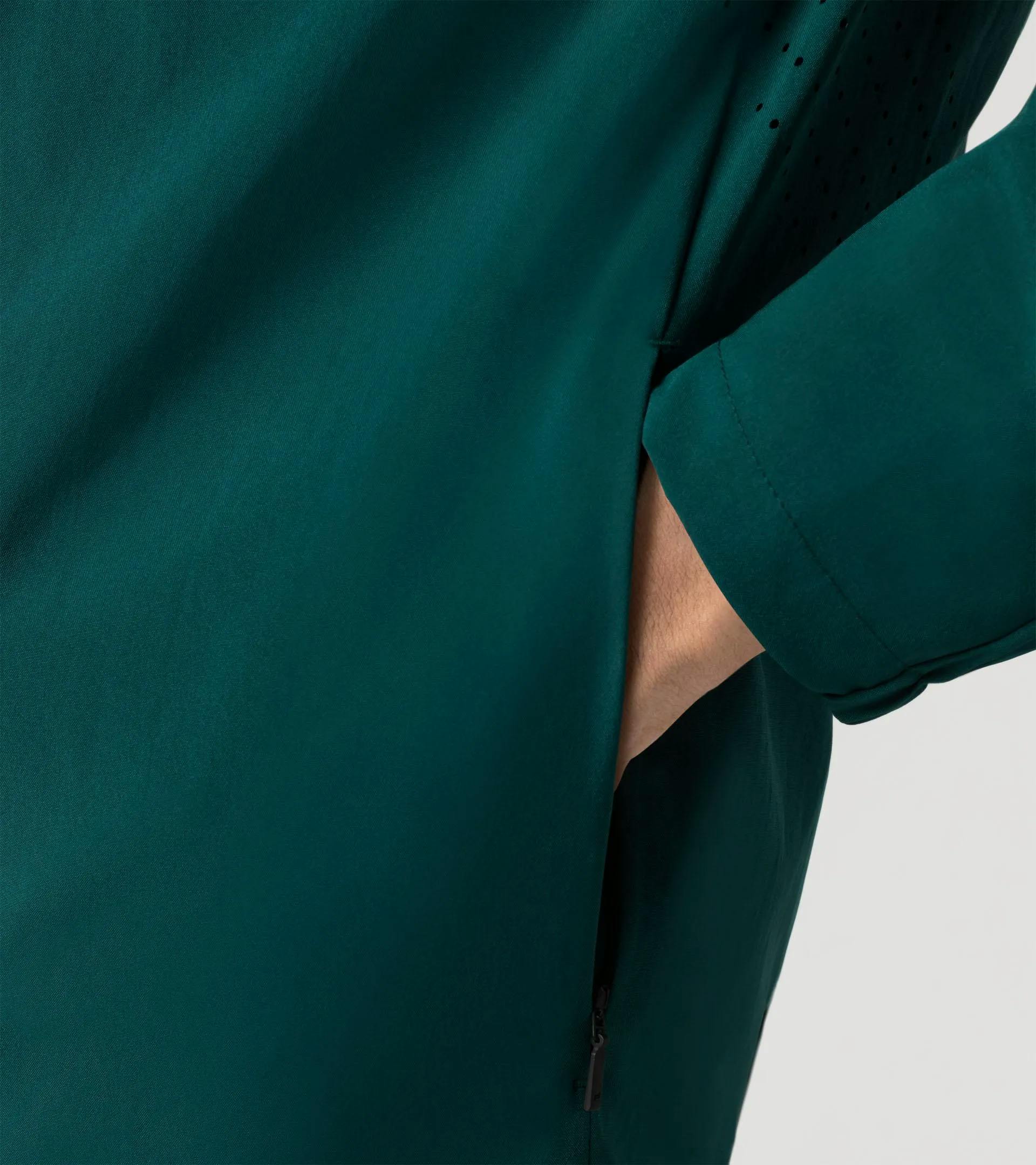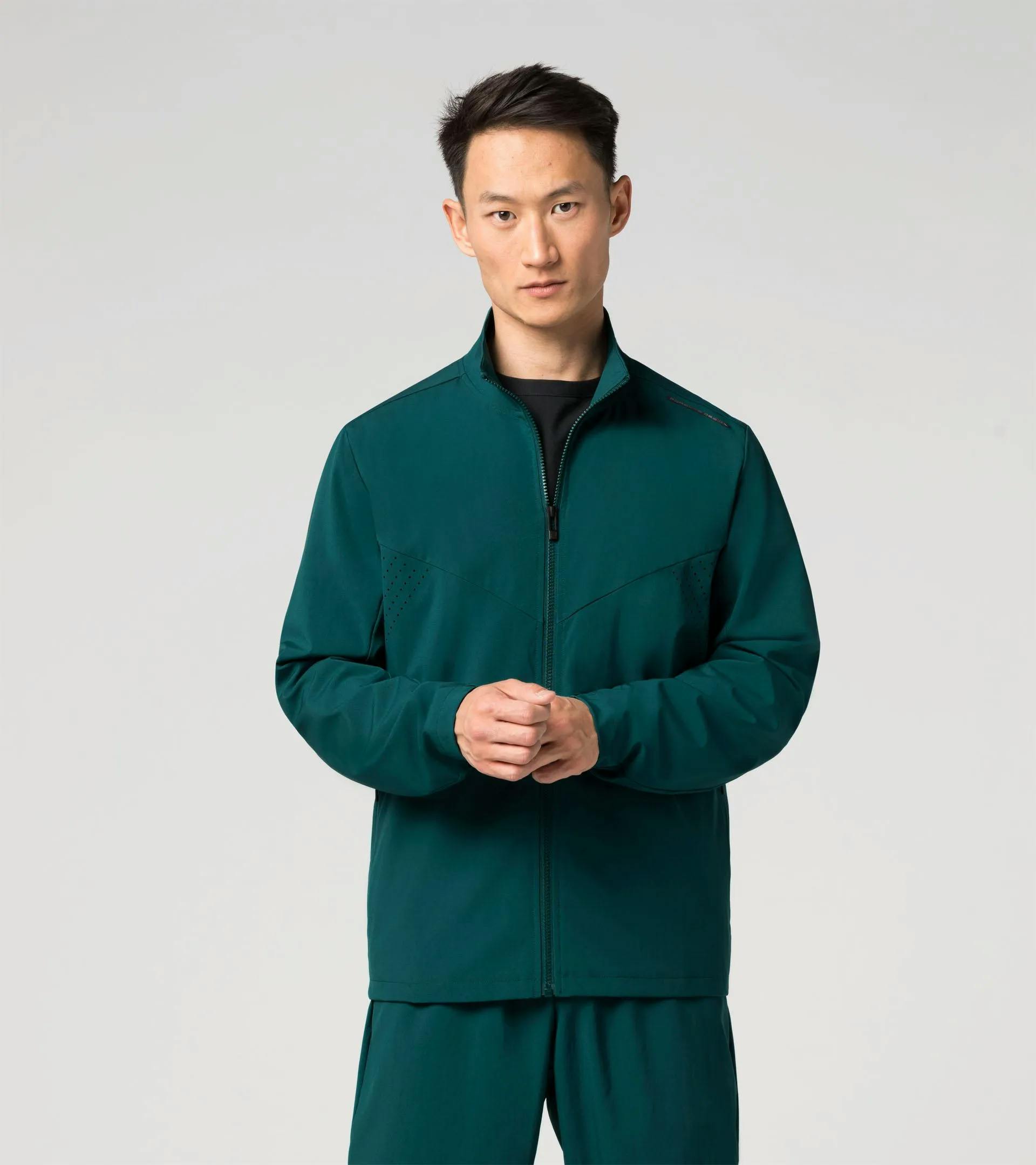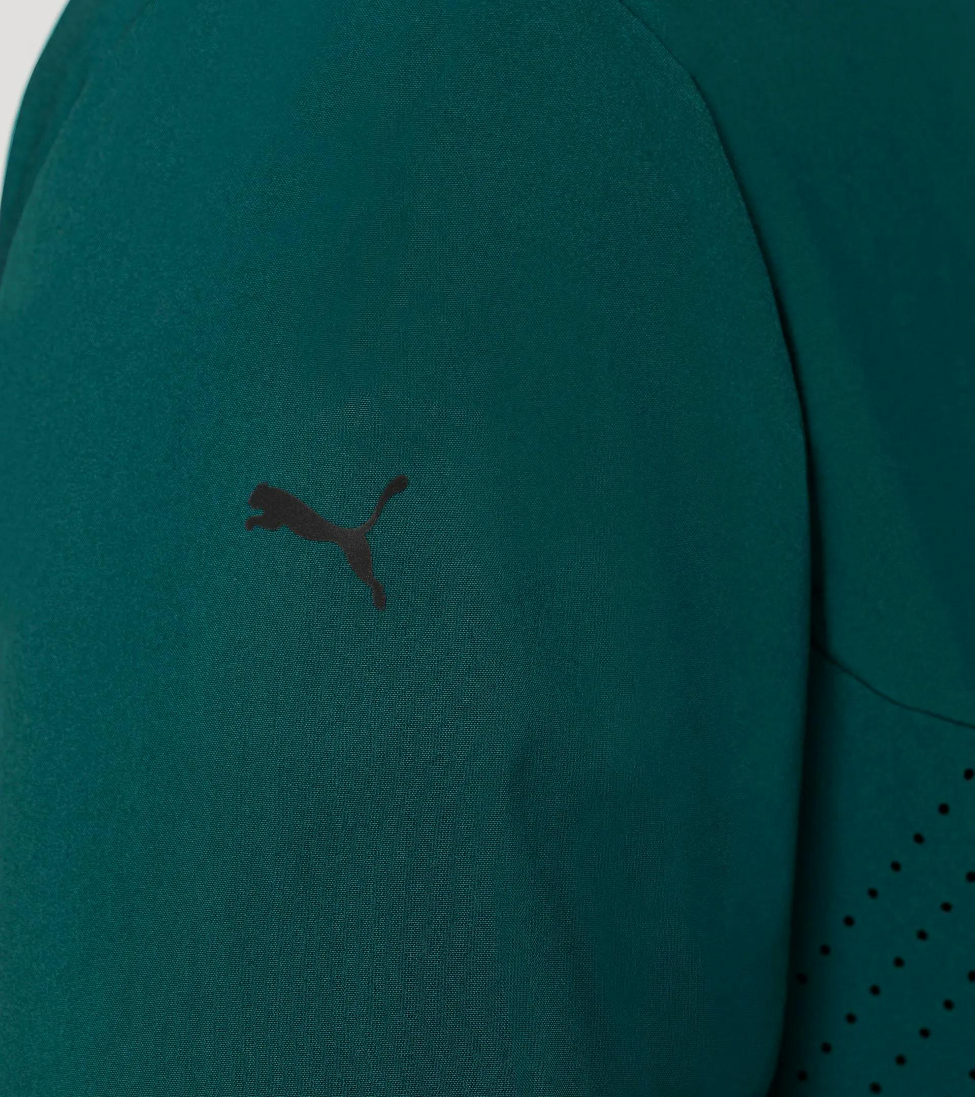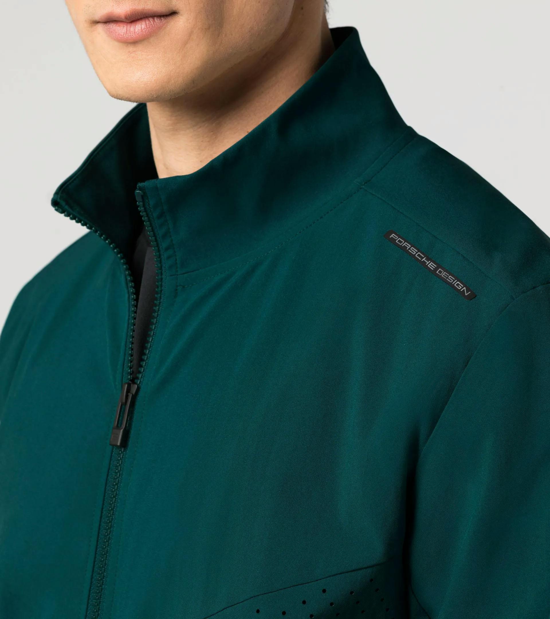 Minimalista, técnico e funcional: Casaco de treino exclusivo da Porsche Design, feito de material elástico de secagem rápida, com poliéster reciclado e forro de malha.