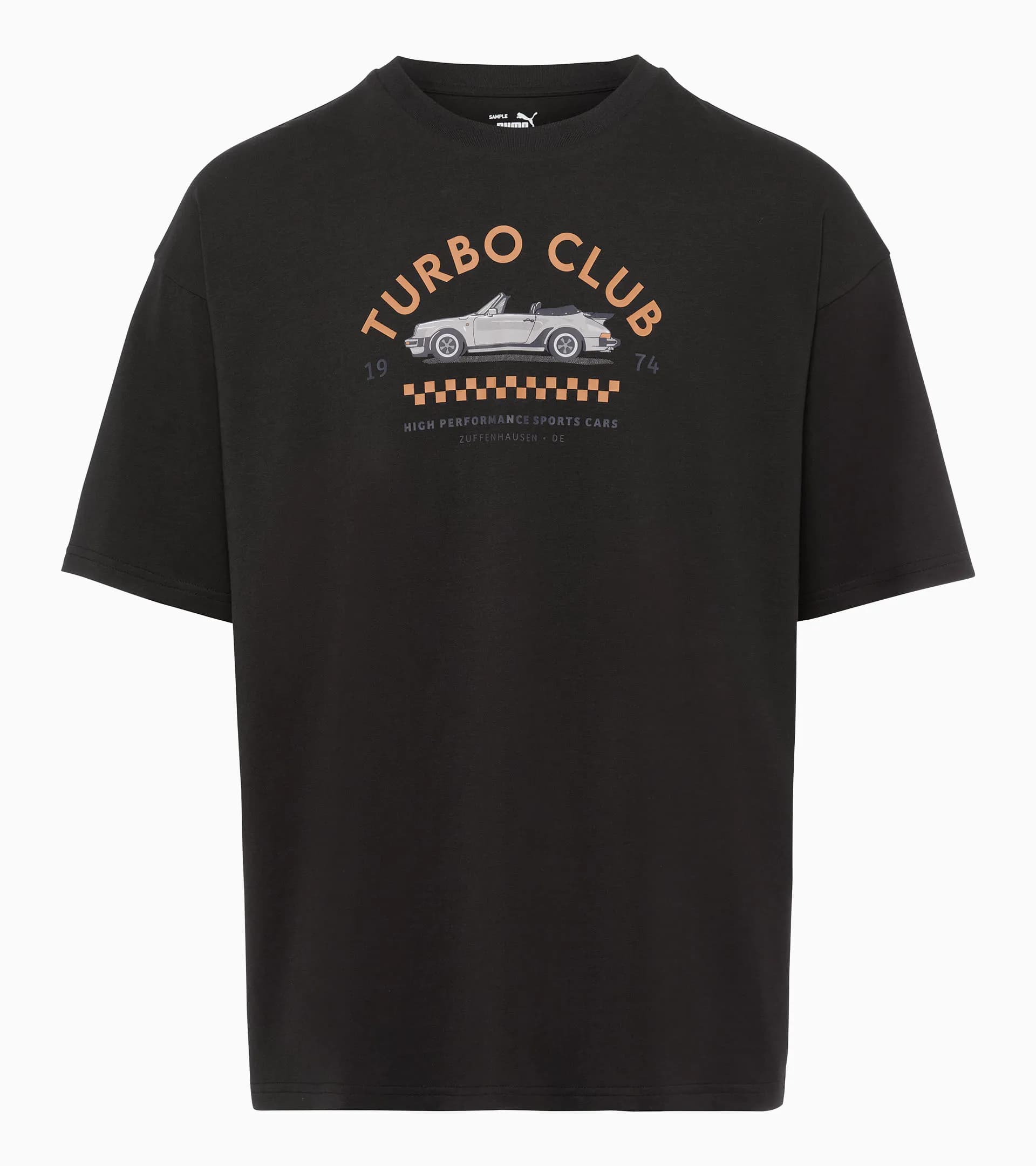 A coleção Porsche Legacy combina a elegância do estilo de vida do clube de campo com o ADN desportivo do Porsche 911 Turbo. A T-shirt gráfica com um corte confortável destaca-se com a impressão do icónico Porsche 911 Turbo Cabriolet no peito.