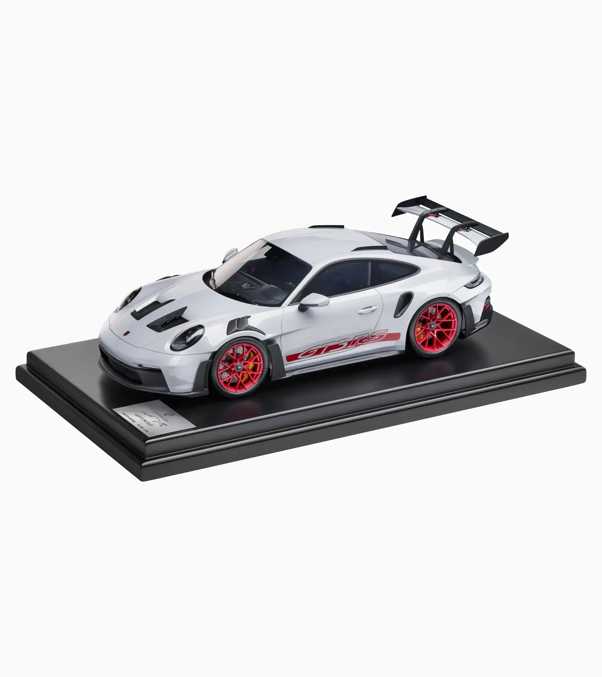 Modelo exclusivo de colecionador do Porsche 911 GT3 RS (992) em resina.