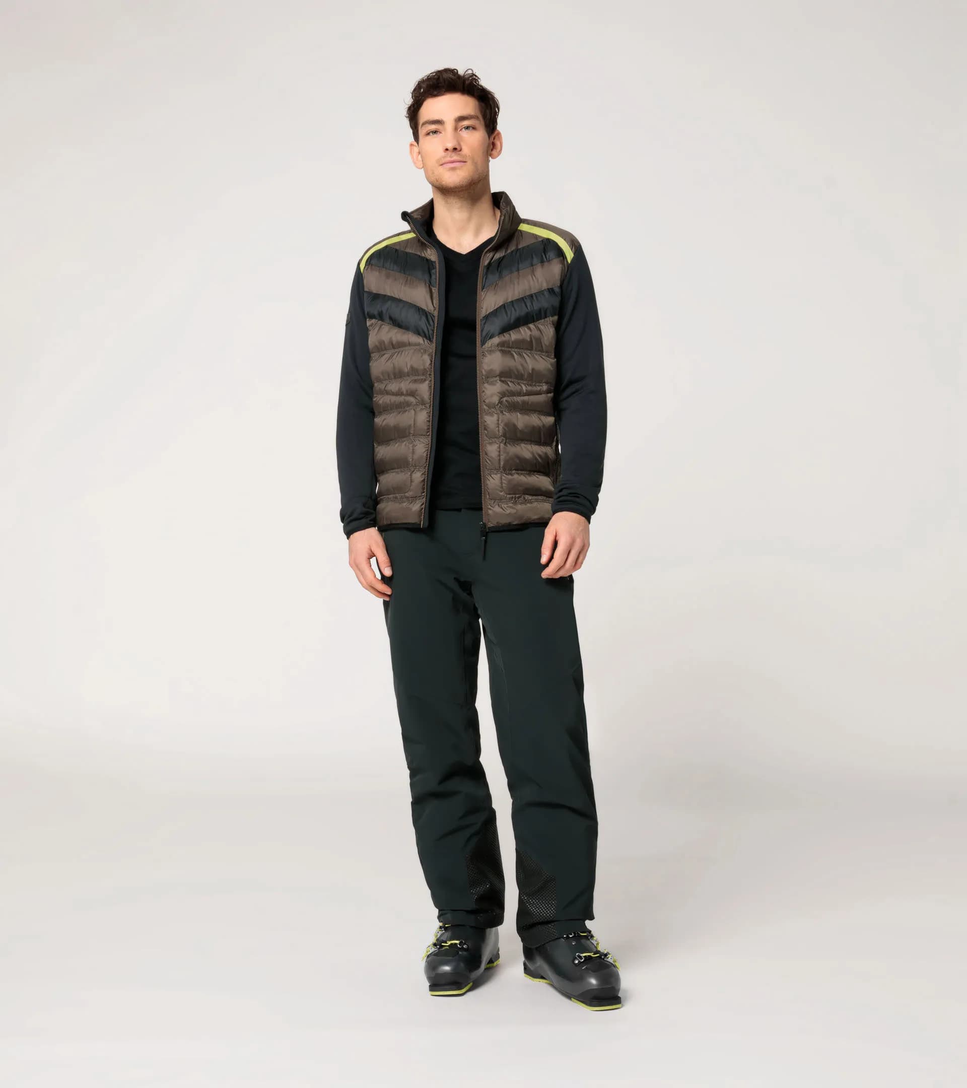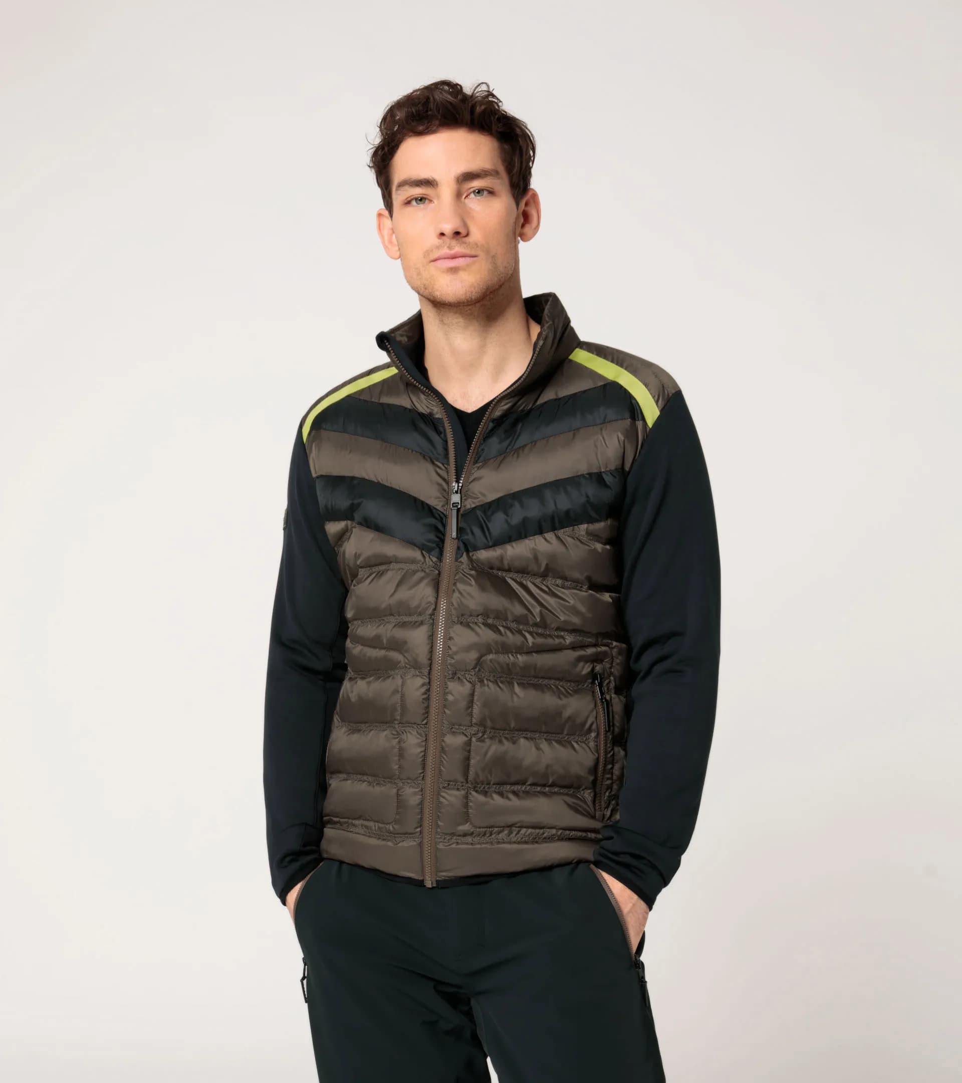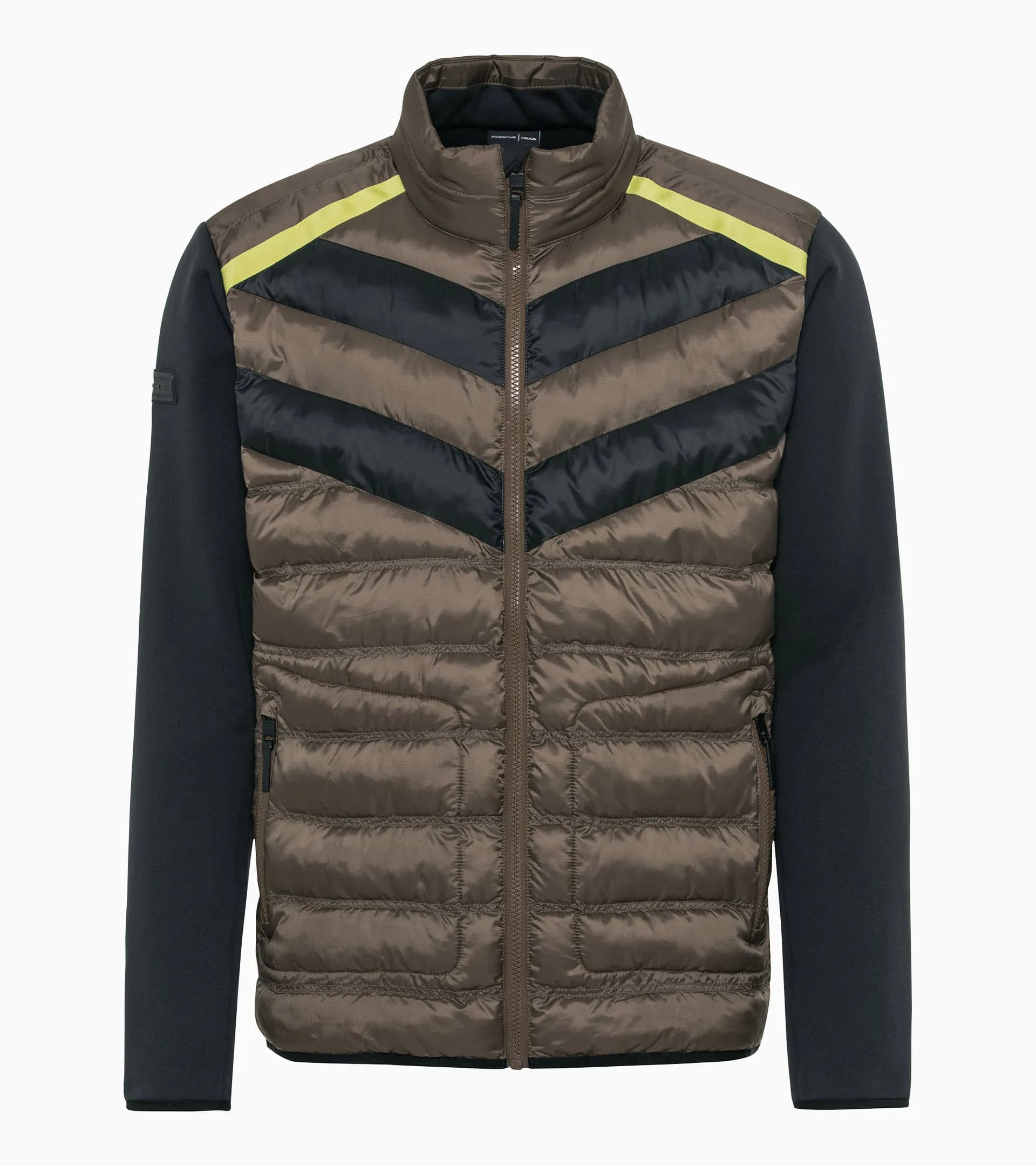 Uma paragem perfeita nas boxes: a nova coleção PORSCHE HEAD não só traz uma lufada de ar fresco, como também um novo design para os desportos de inverno. Inspirada nos lendários Porsche Turbo, esta coleção exclusiva oferece o equipamento perfeito para os entusiastas do esqui e da Porsche. O casaco de esqui Turbo é convincente, assim como a camada intermédia correspondente e as calças de esqui PORSCHE HEAD, com construção inteligente e design exclusivo. O casaco combina um tecido Ripstop leve com um acolchoamento duplo e um tecido Power Stretch escovado, que abraça o corpo, nas costas e nas mangas. Esta construção híbrida não só oferece um conforto excecional, como também a máxima liberdade de movimentos. A gola alta acolchoada proporciona um conforto adicional, enquanto os bolsos centrais frontais e laterais com fechos de correr SAB® brilhantes oferecem funções práticas. A bainha e os punhos elásticos garantem um ajuste personalizado. Uma fita Porsche tecida adorna a secção do ombro frontal do casaco e acrescenta subtis toques de design.