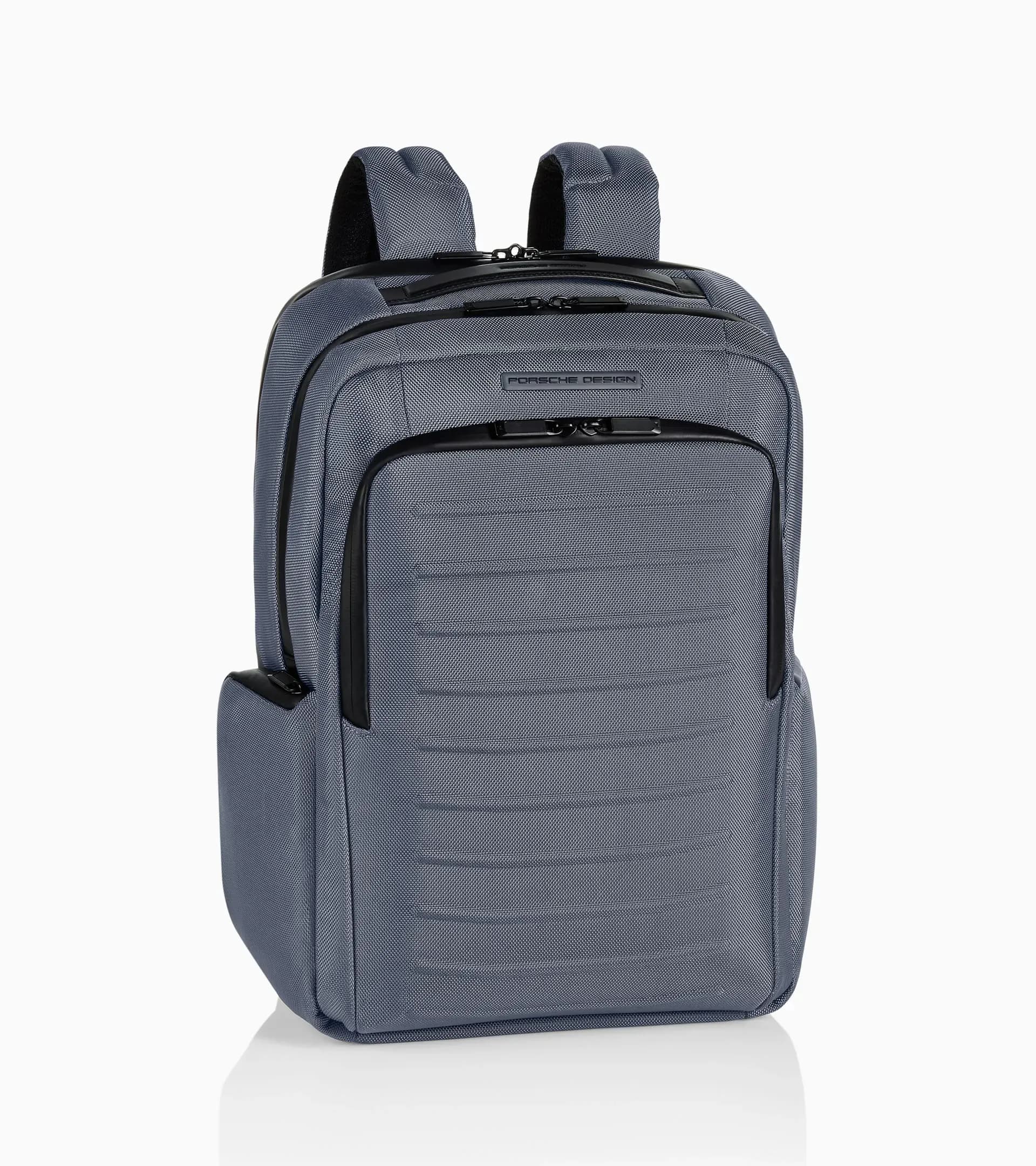 Espaçosa mochila Porsche Design em material resistente à água. Com compartimento para notebook e alças ajustáveis.