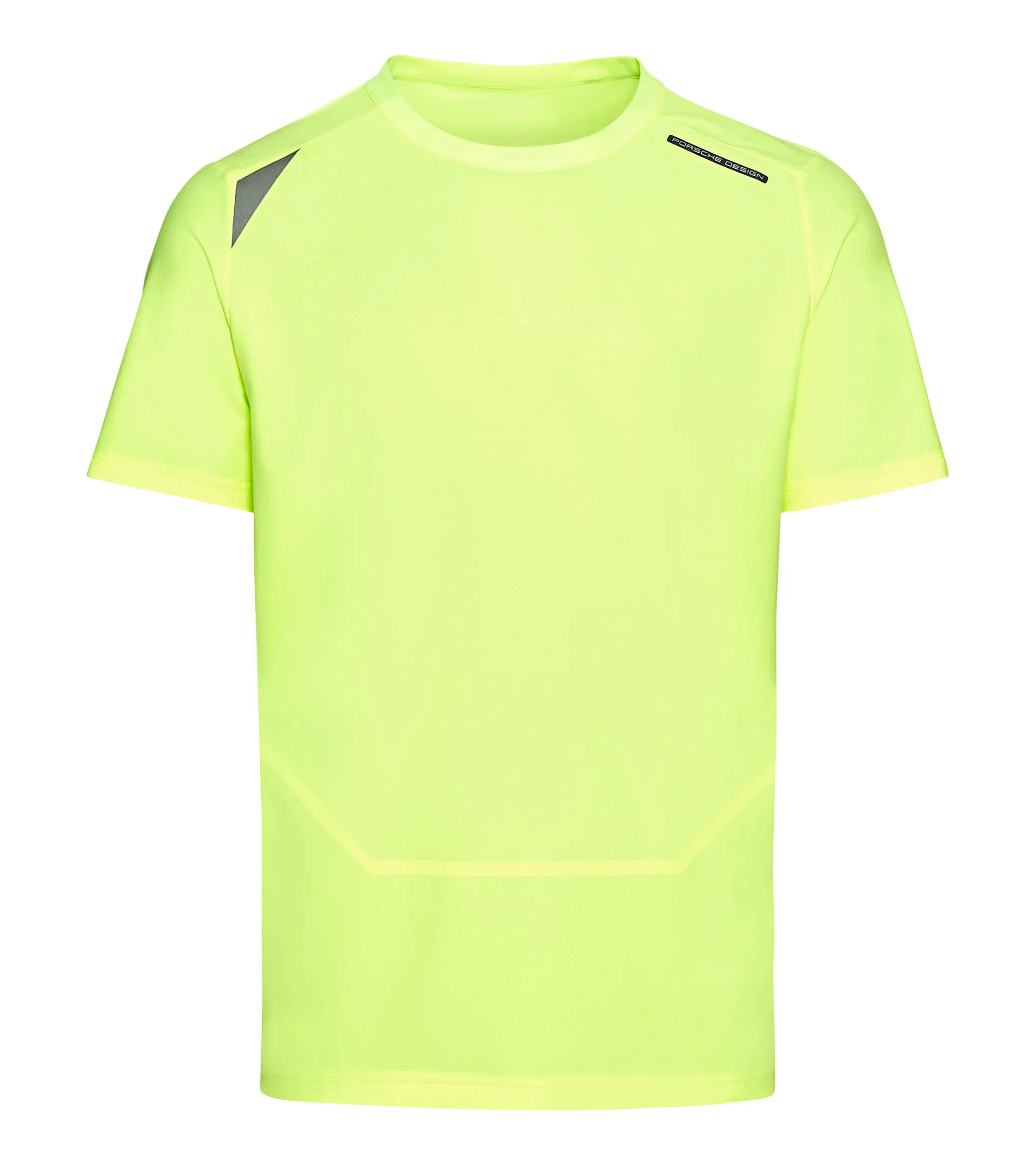 Performance in design and function. Whenever you are active: the ultralight Porsche Design Active Tee is ready. The technical, breathable bi-stretch material with dryCELL® technology and graphic structure is quick-drying and moisture-wicking. The design in no way lags behind the high-performance material – thanks to the dynamic cut, movement-optimized sleeve design, and taped seams. Reflective design details on the front and a reflective PD icon on the back provide discreet but exclusive accents. With that the shirt is not only the perfect training partner, it is also a stylish basic. Styling tip for a racing-inspired look: wear with the Racing Jacket, MCS Woven Pants, and RCT XeticN Sneakers.