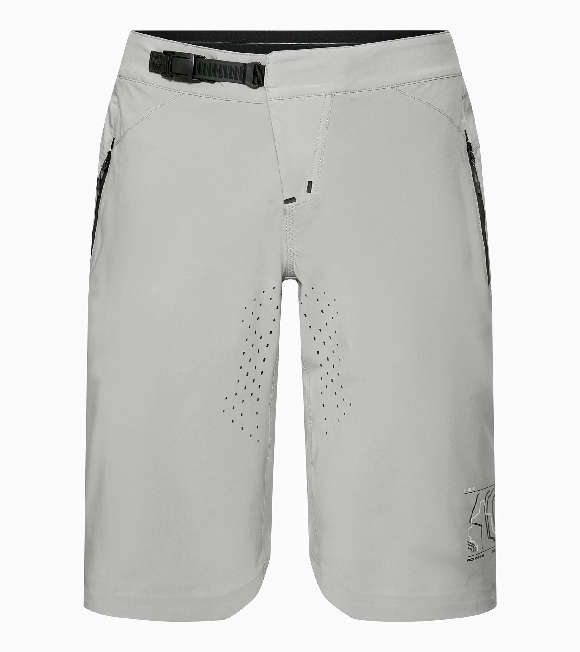 Porsche x ION bike shorts for optimal freedom of movement. Laser-cut ventilation holes provide exceptional breathability, while four-way stretch ensures the flexibility you need for mountain biking. An elastic cuff and a flat ratchet closure on the front prevent pressure points during the ride, ensuring pure riding comfort.