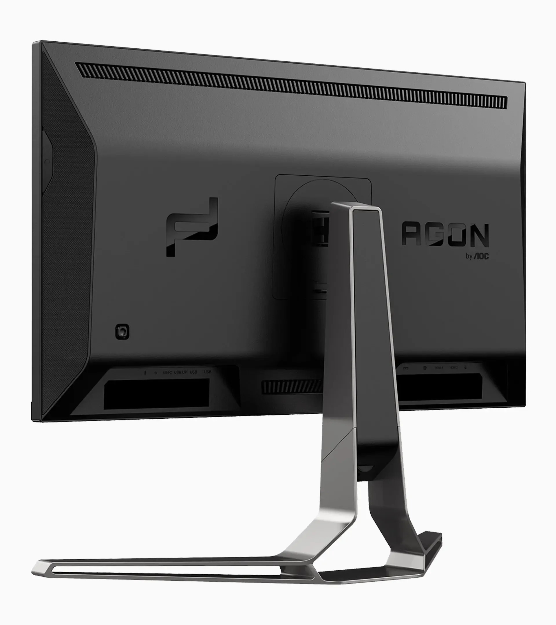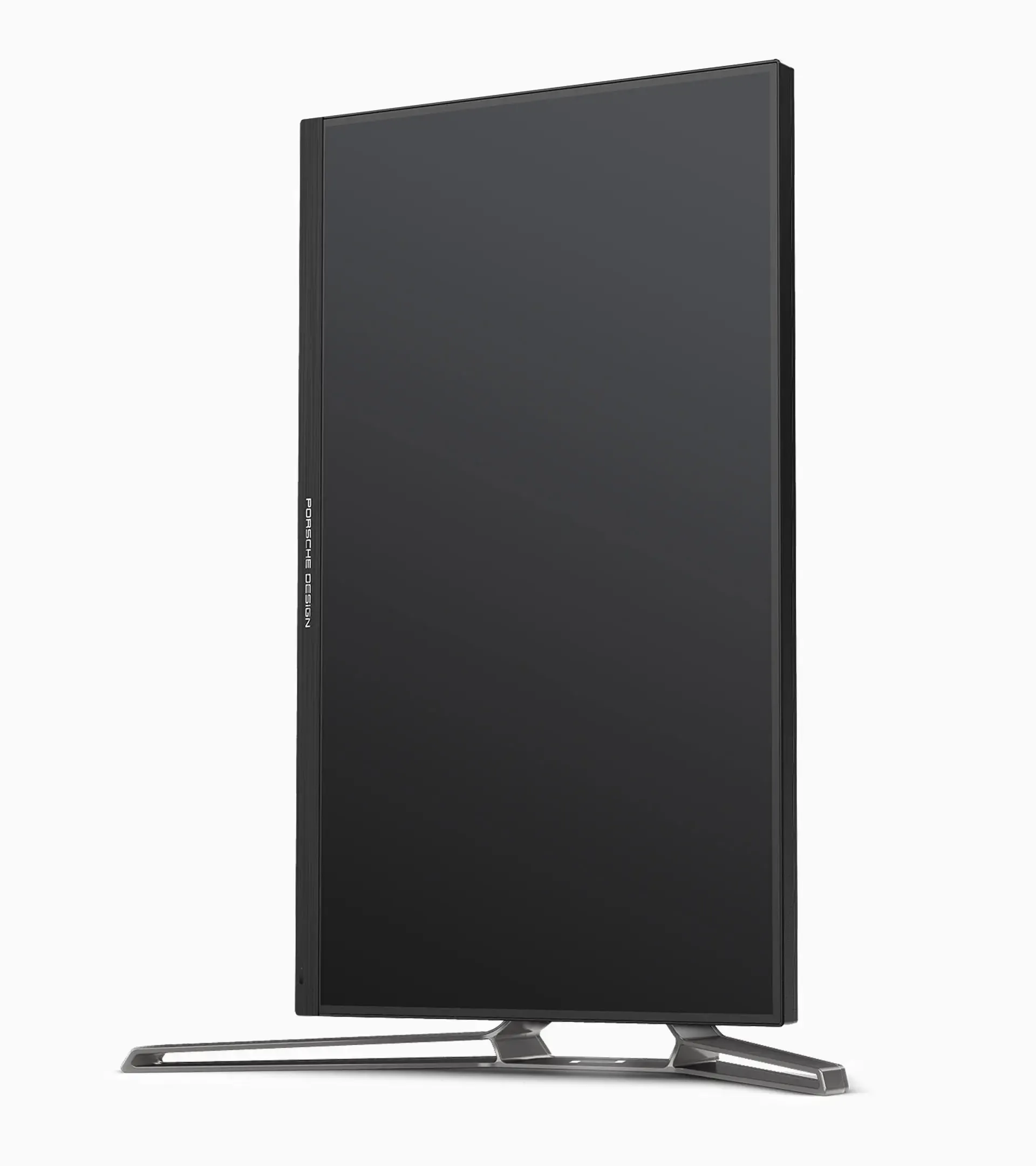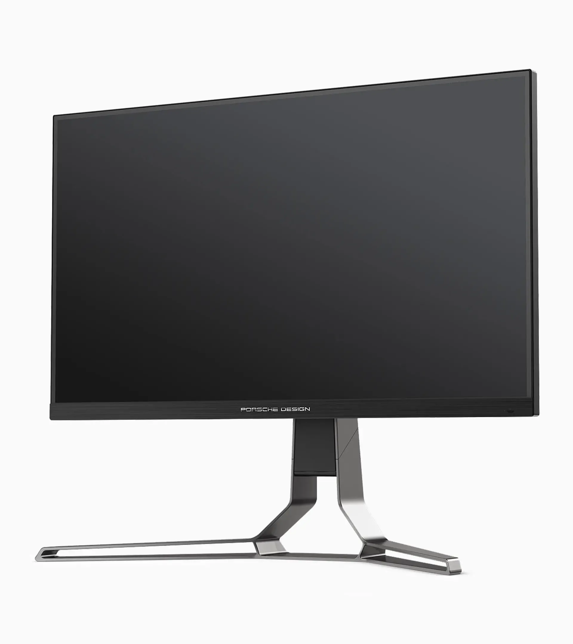 Visible dynamism combined with the performance of AGON by AOC gaming technologies: the Porsche Design AOC AGON PRO PD32M sets new standards in the field of gaming monitors. The 32-inch mini-LED display represents the pinnacle of monitor performance. It rests on a trapezoidal aluminum stand designed in the style of Porsche steering wheels. The bold, streamlined design of the monitor also takes its inspiration from the world of Porsche sports cars. If the outside promises performance, the inside delivers: the panel, Display HDR 1400-certified with 4K resolution and a wide color space of 97% DCI-P3, ensures outstanding visual reproduction for games, streaming and graphics. The high refresh rate (144 Hz), a I ms response time, AdaptiveSync, and the impressive, detailed graphics reproduction (peak brightness of 1.600 nits) make for an even more fluid game experience. Full range of ports as well as an adjustable stand add the convenience that most demanding gamers need.