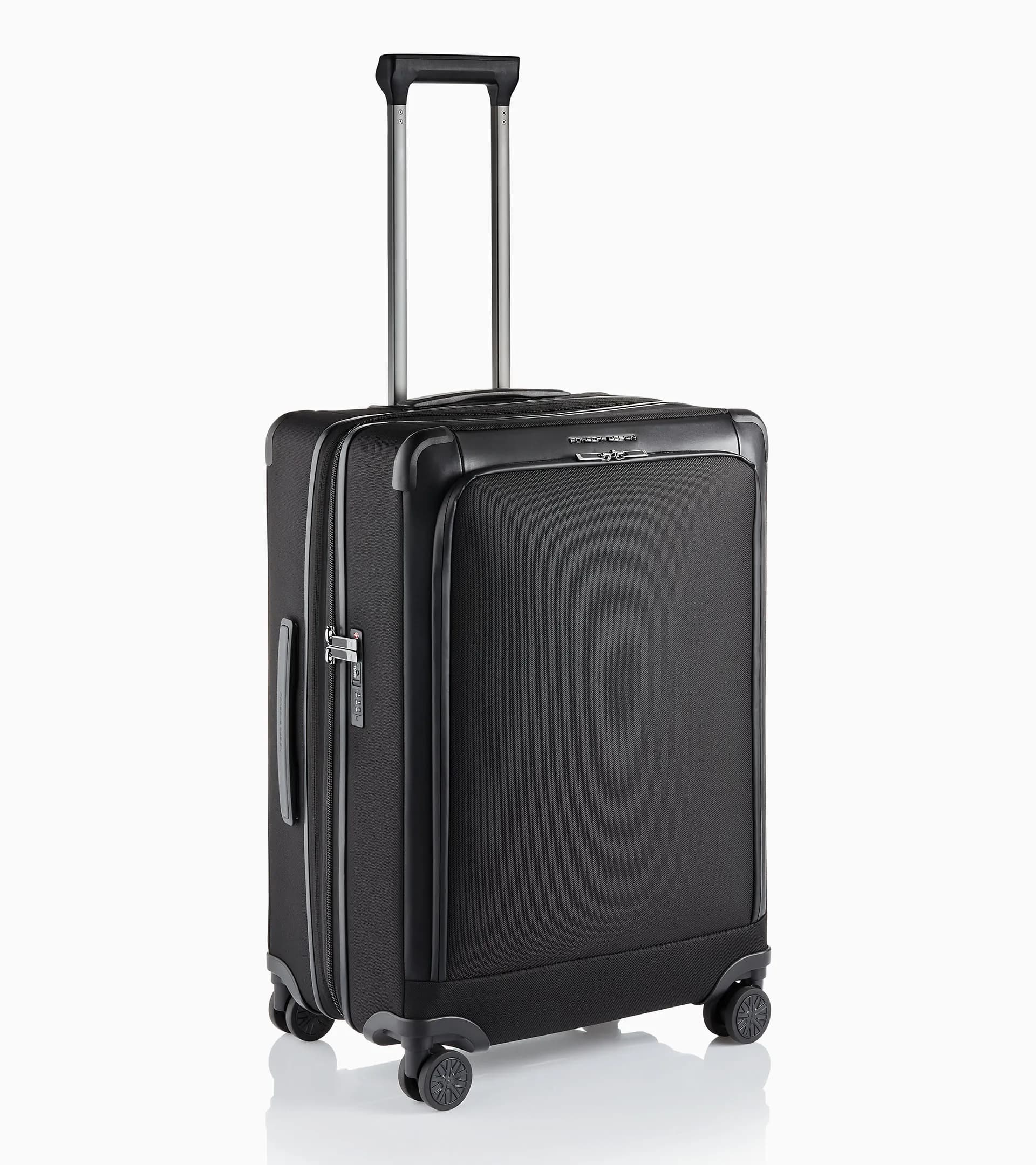 Compact, elegant Porsche Design trolley made of water-repellent nylon and leather.