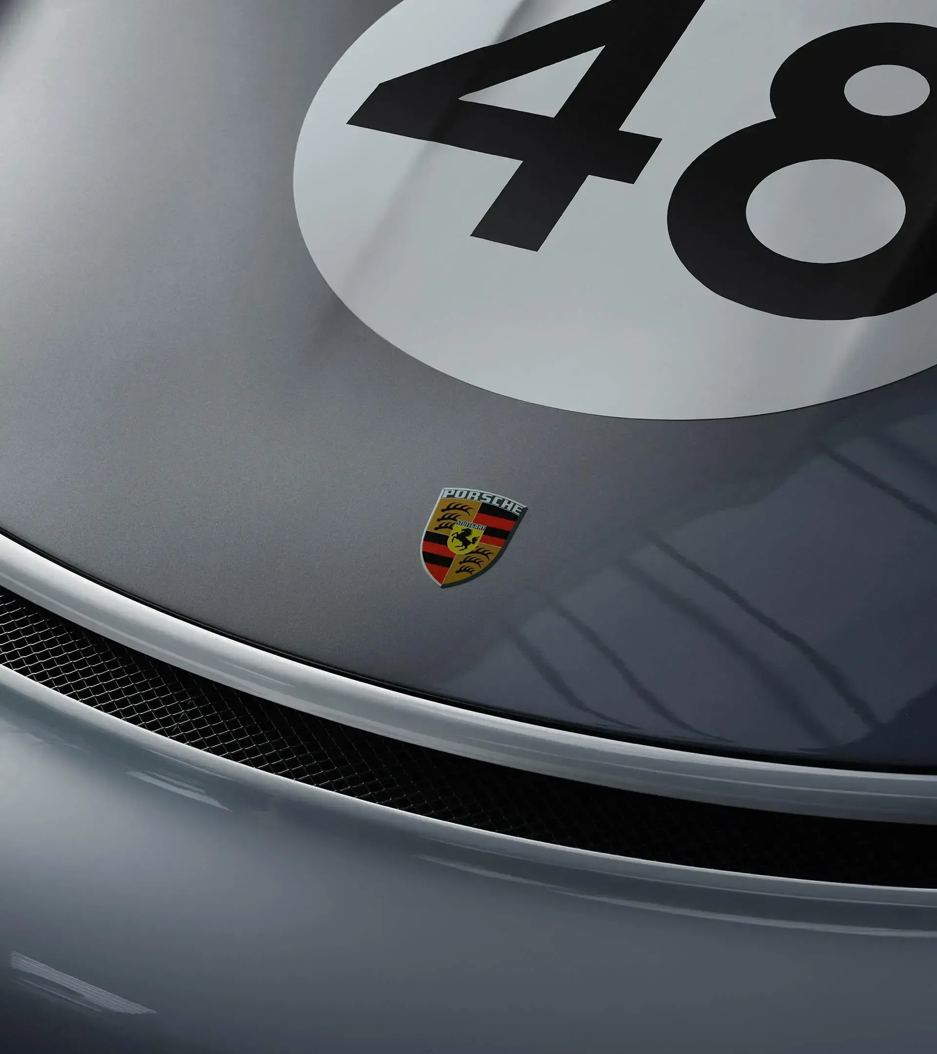 New edition from Porsche Classic and a retro element in the 911 Speedster Heritage Design Package: A sticker displaying the historic Porsche crest. For the bonnet lid of your Porsche classic car in format 51 x 68 mm.