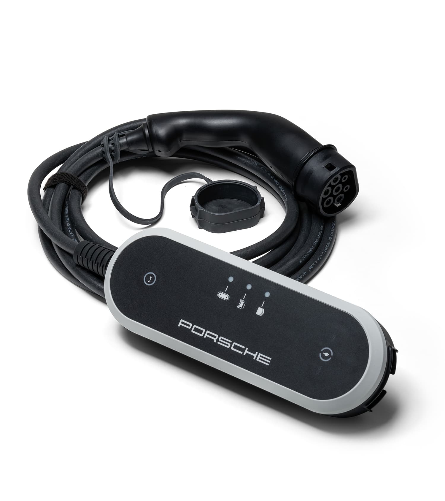 1Obs! Porsches laddningsutrustning är endast avsedd för användning i fordon som följer de allmänt tillämpliga standarderna och riktlinjerna för elfordon. Kompatibilitet garanteras endast för elektrifierade fordon med typ 2-kontakt. Laddningstiden beror på fordonsmodell, fordonets utrustning och i vilket land det laddas.
