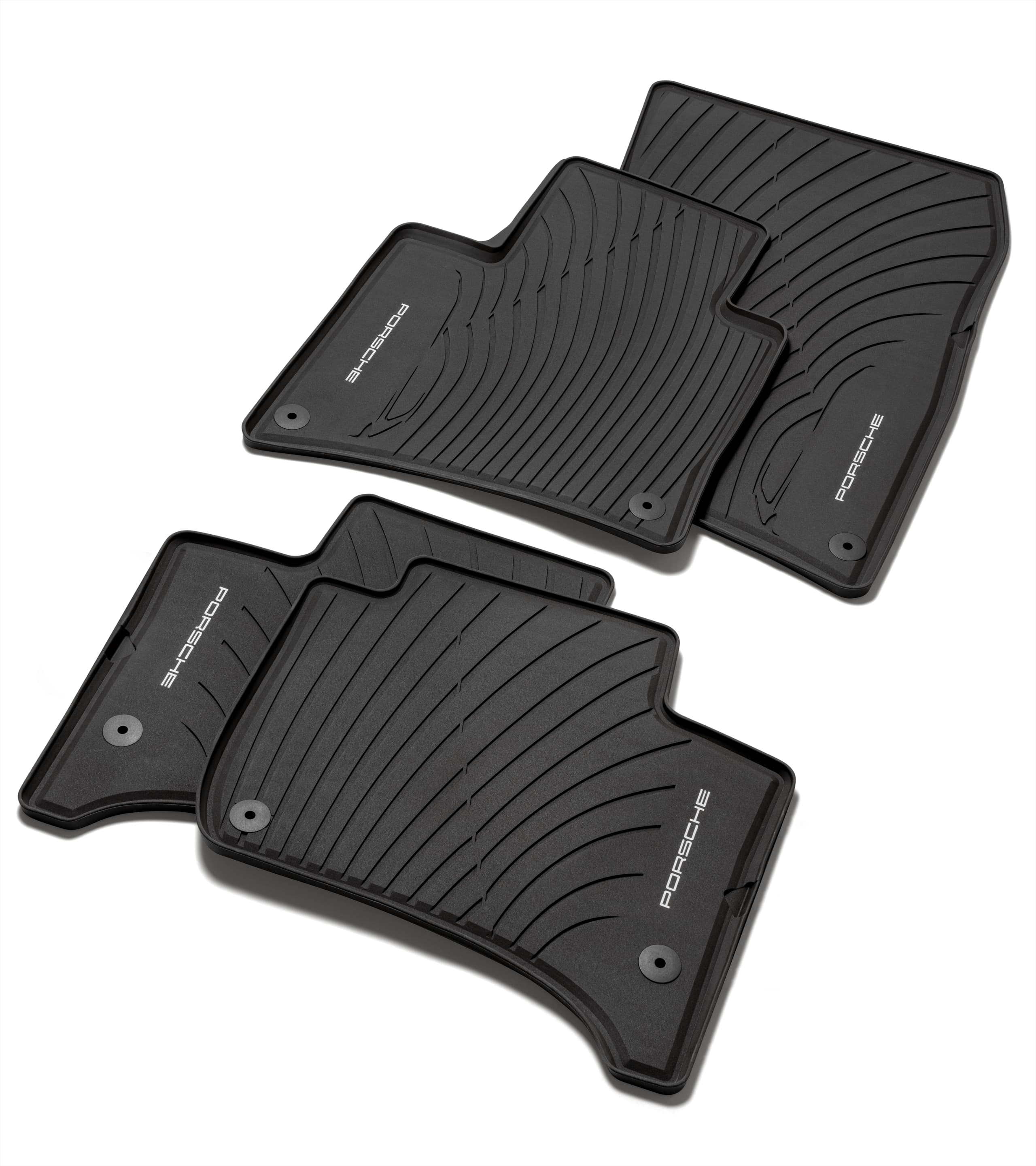 Fyrdelat set i snygg design med fordonssiluett och ”PORSCHE”-text. Halkfri och vattentät med upphöjd kant.