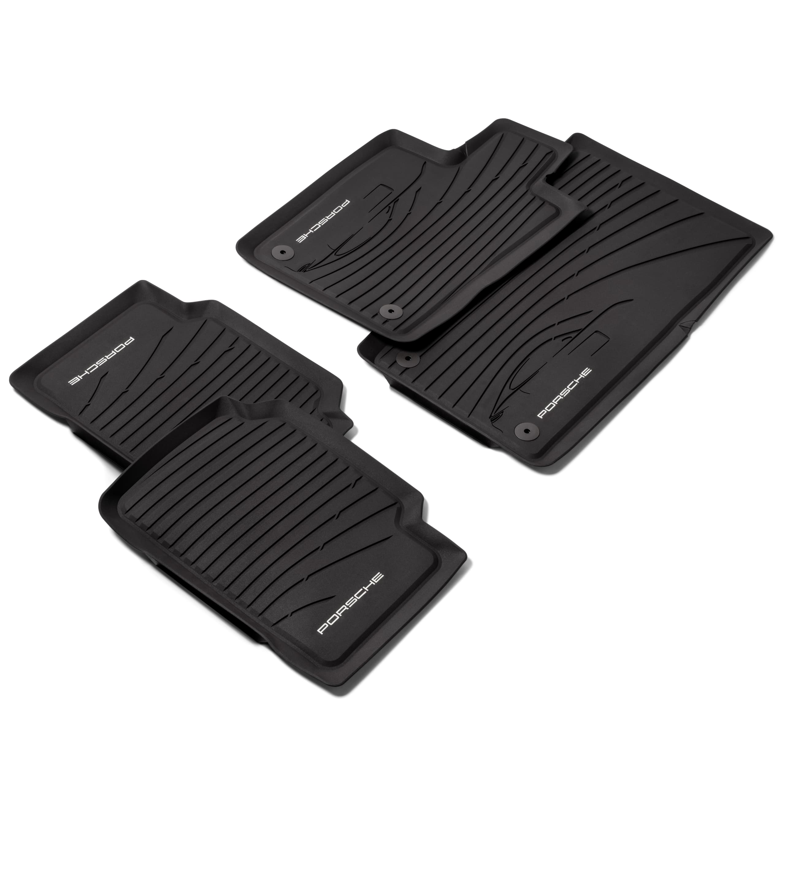 Fyrdelat set i snygg design med fordonssiluett och ”PORSCHE”-text. Halkfri och vattentät med upphöjd kant.