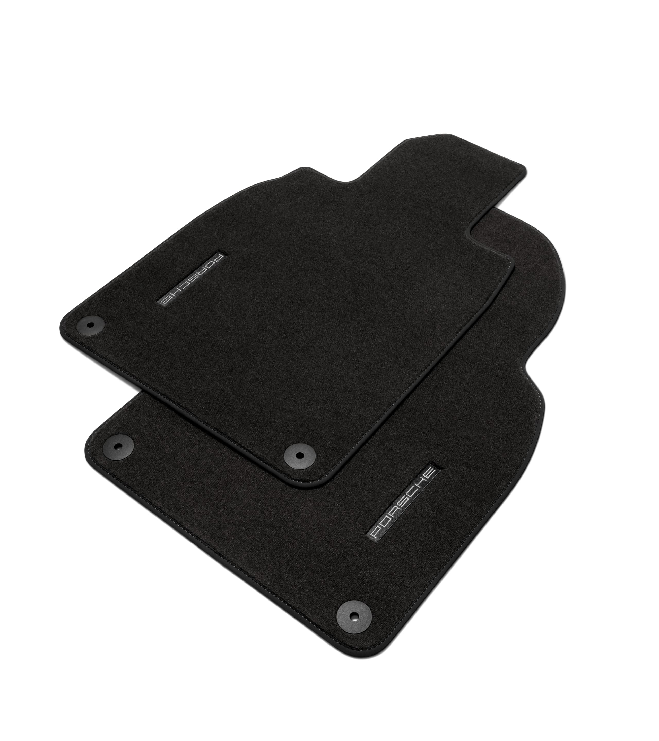 I utvalda interiörfärger, med nubuckkant och inlägg med broderad ”PORSCHE”-text i silver.