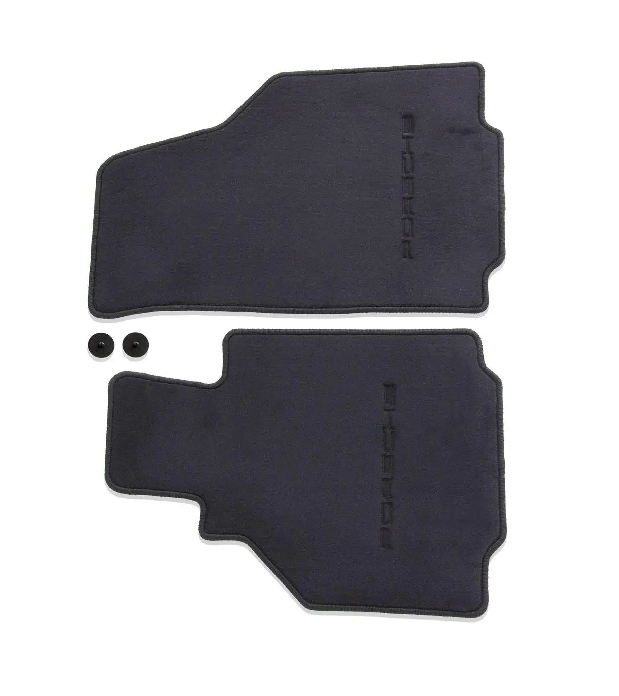 Set med golvmattor (2 delar) i svart för vänsterstyrda fordon. Kan användas i Porsche Boxster (986), årsmodell 1997 till 2004.